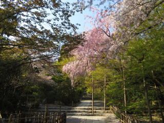 | 庫裡に向かう道の枝垂桜と青葉が綺麗でした。 |