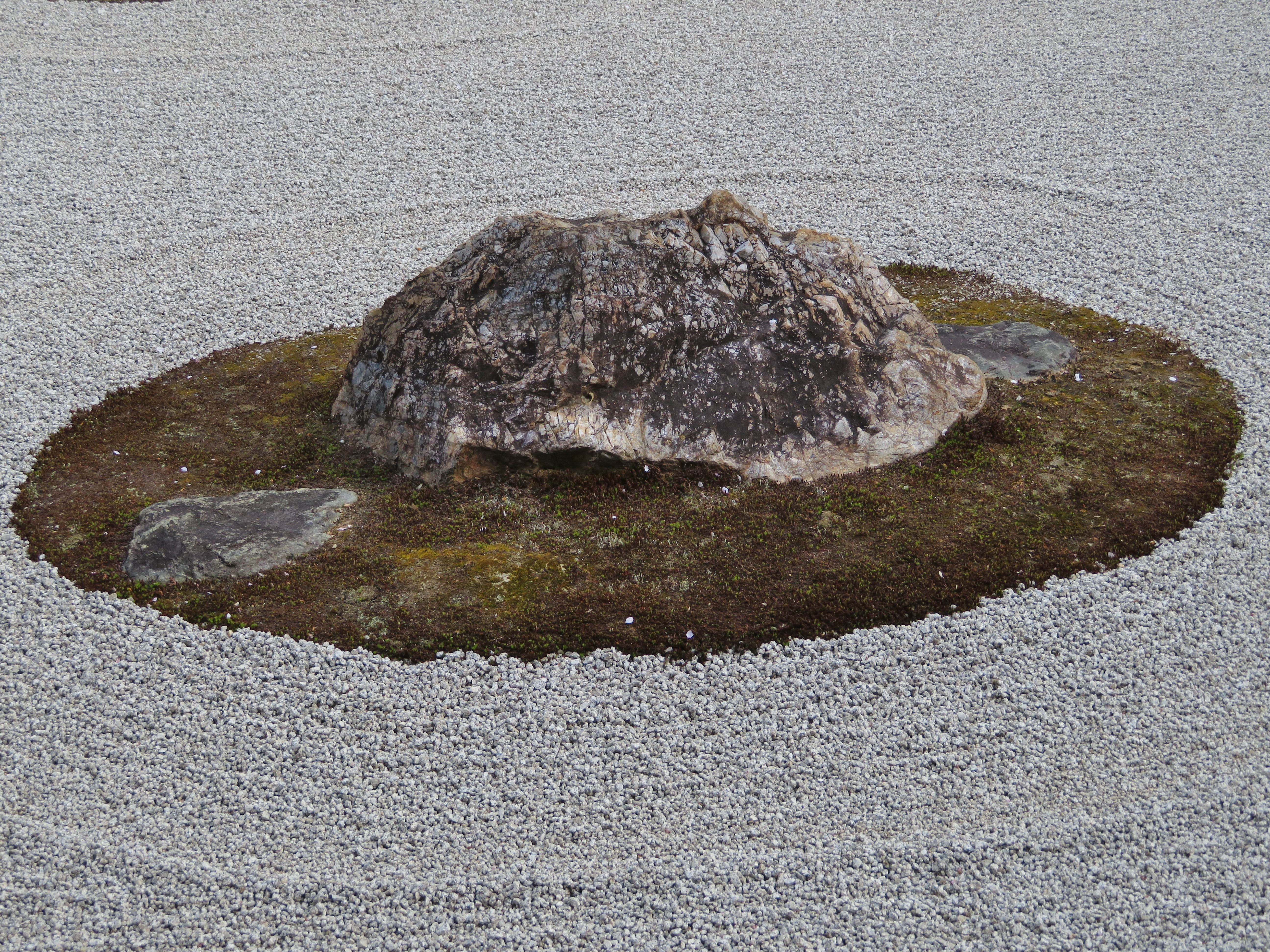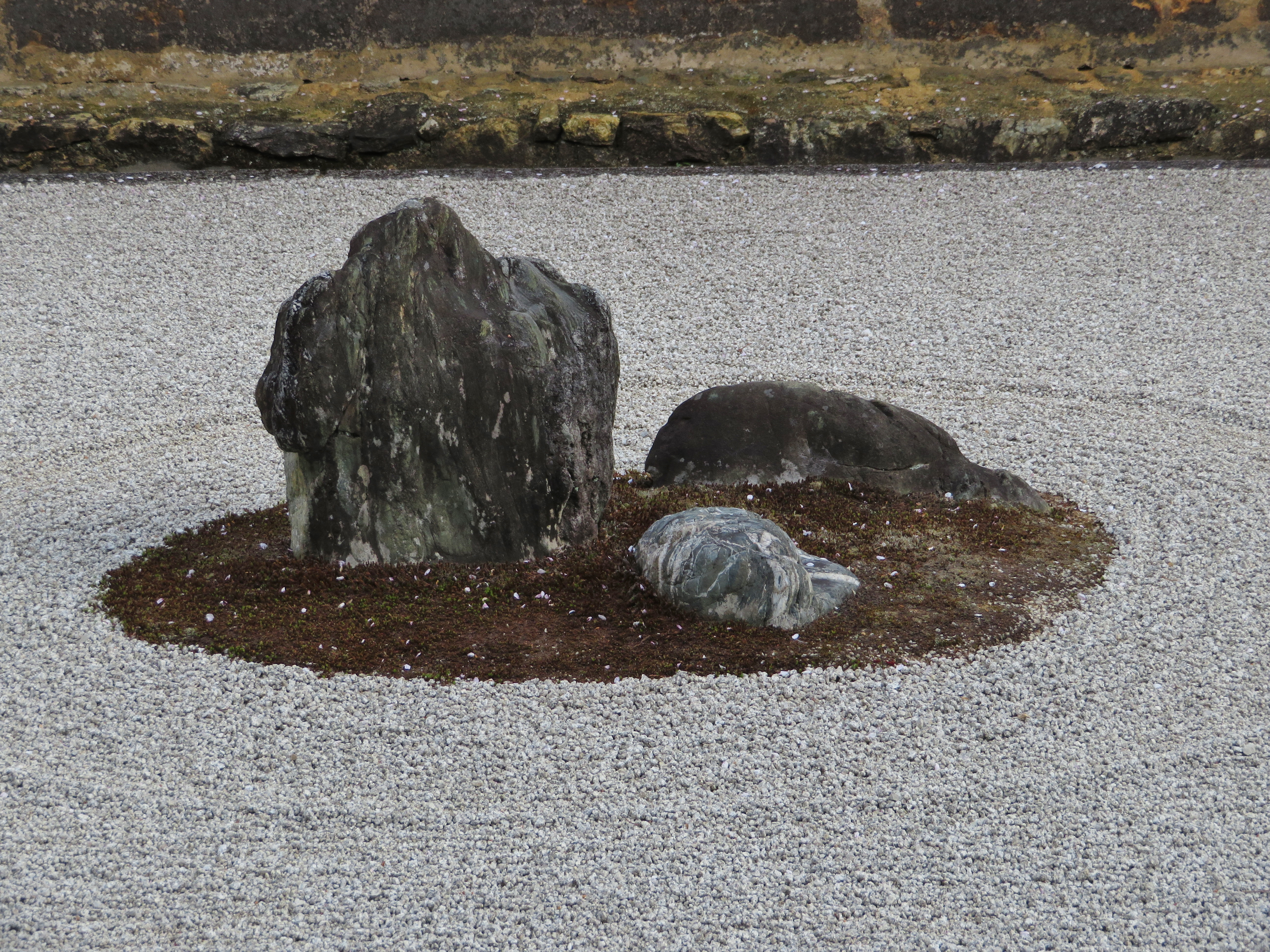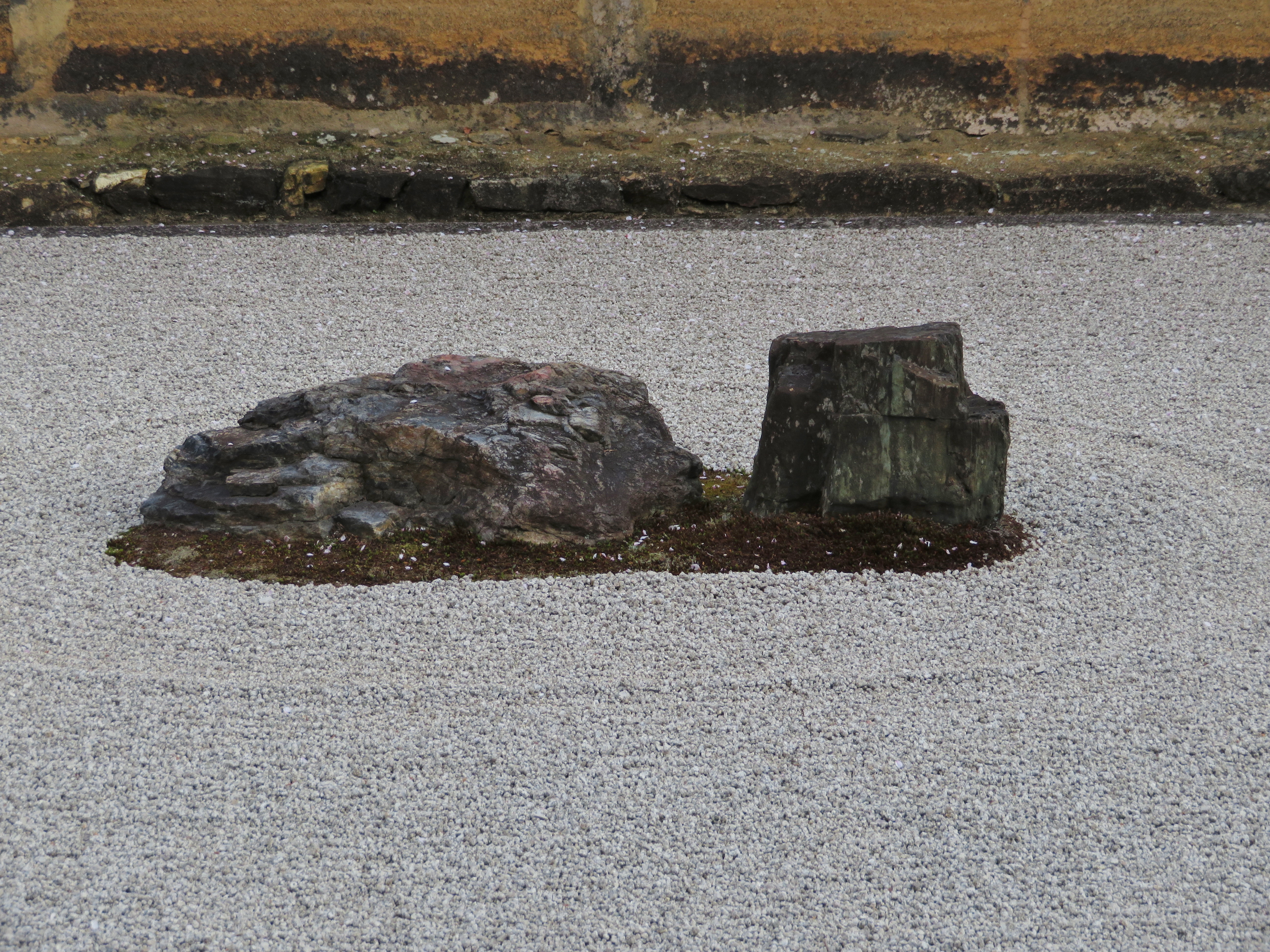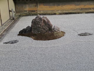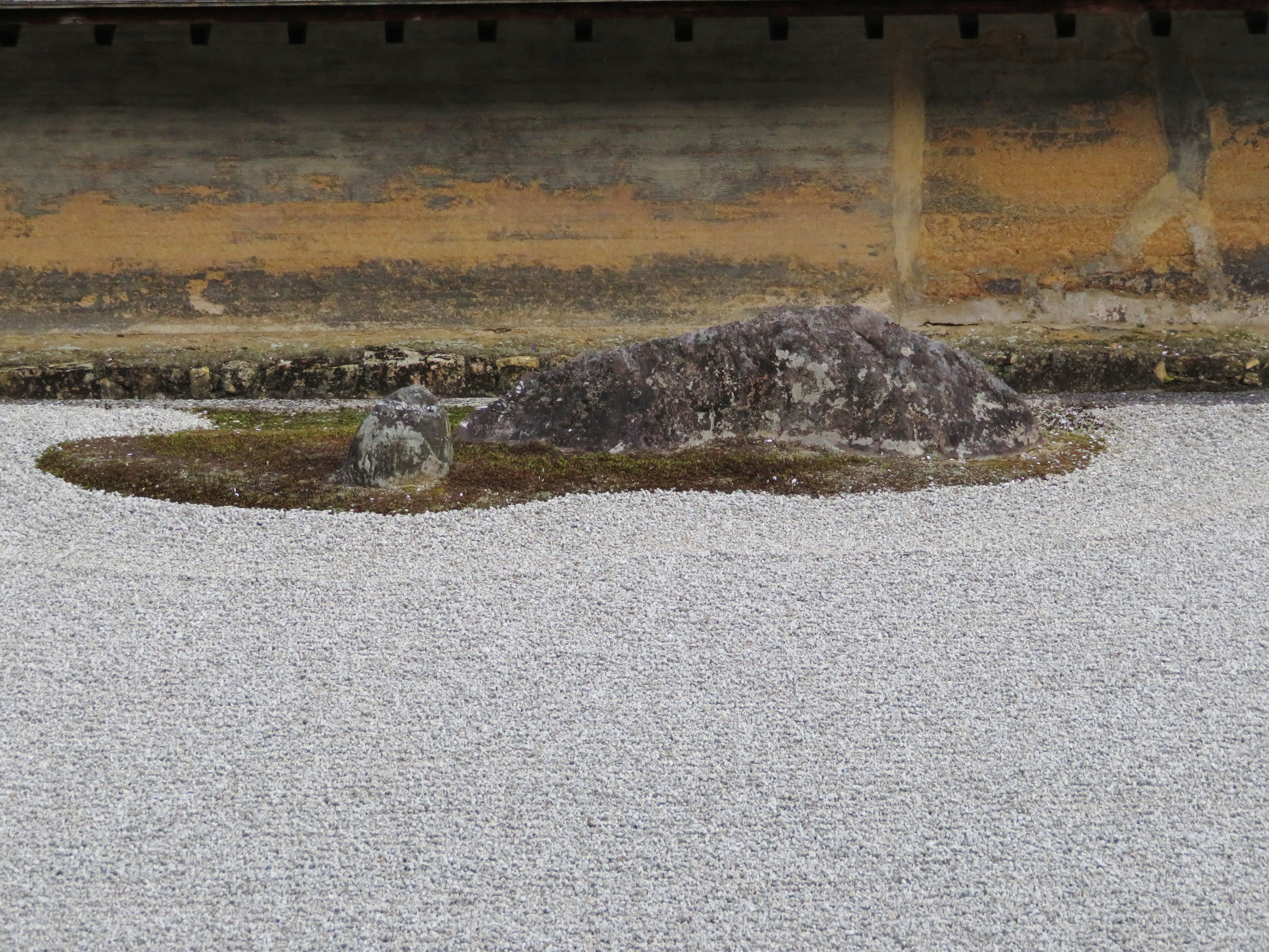 | 石庭は十五の石で造られているのですが、どの位置から見ても十五は見えません。 |