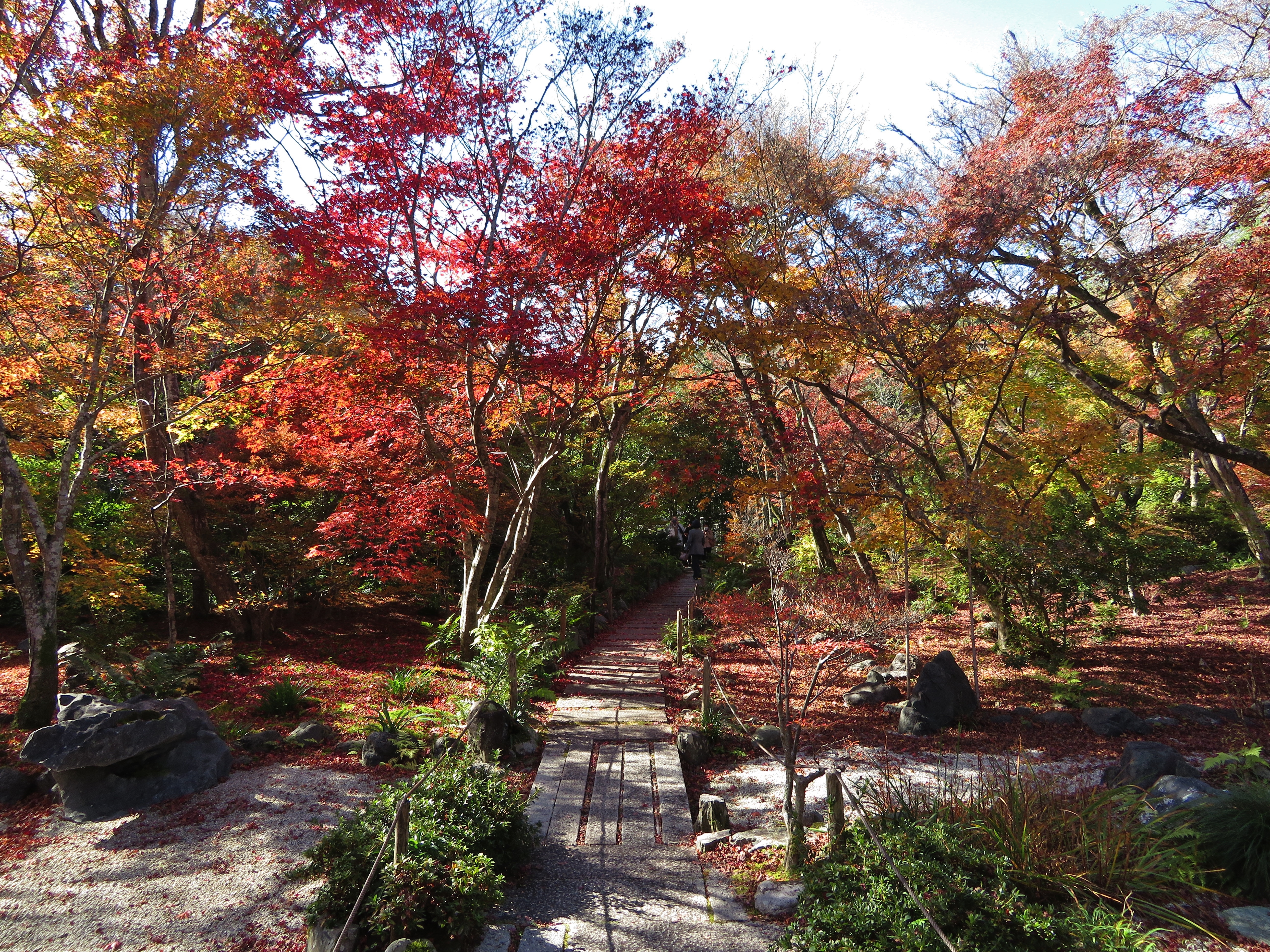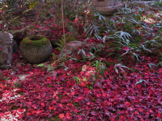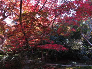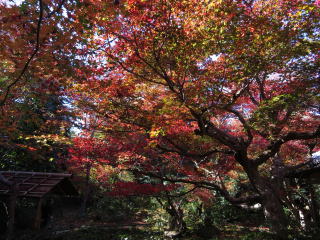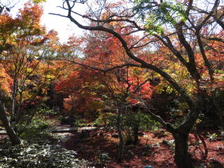 | 幸いにも人が少なかったので、狭い庭園にもかかわらずゆっくり出来ました。 数本しかない楓の樹の見事な紅葉の迫力は、狭い庭園だからこそ味わえるのでしょう。 |