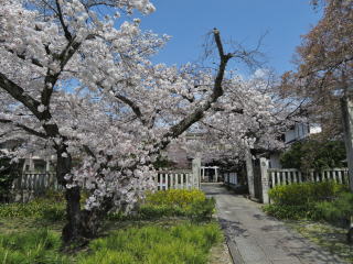| 向かいの清流邸のしだれ桜は、道路改良工事の車で写真が撮れませんでした。 |
