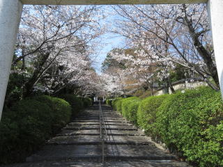 | 何時もは開花が遅い宗忠神社ですが、思いの外満開でした。 石段の向こうに真如堂が見えます。 |