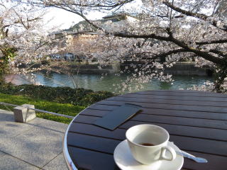 | 運良く空席があったので、桜の下でゆっくりコーヒーを飲めました。 |