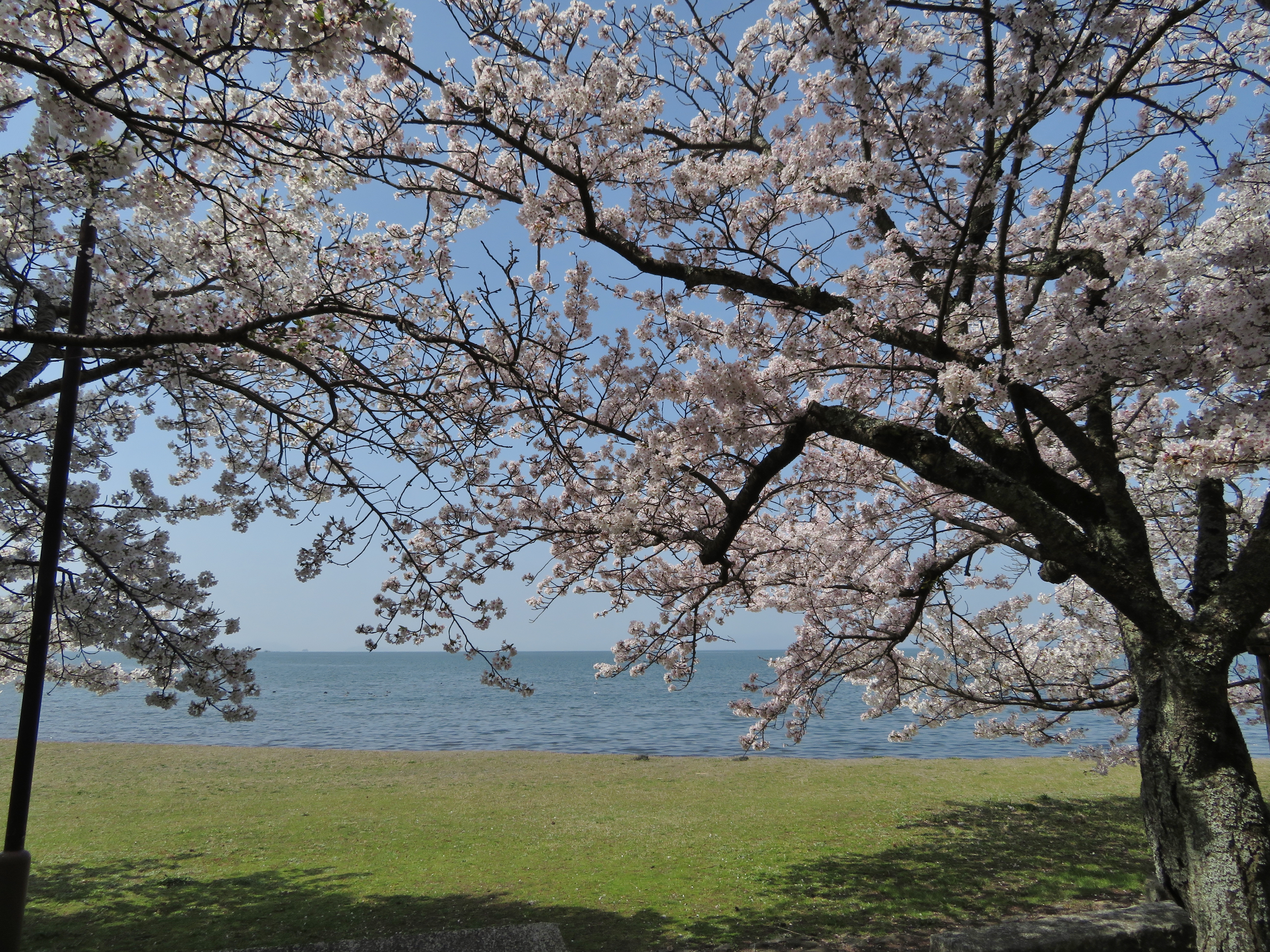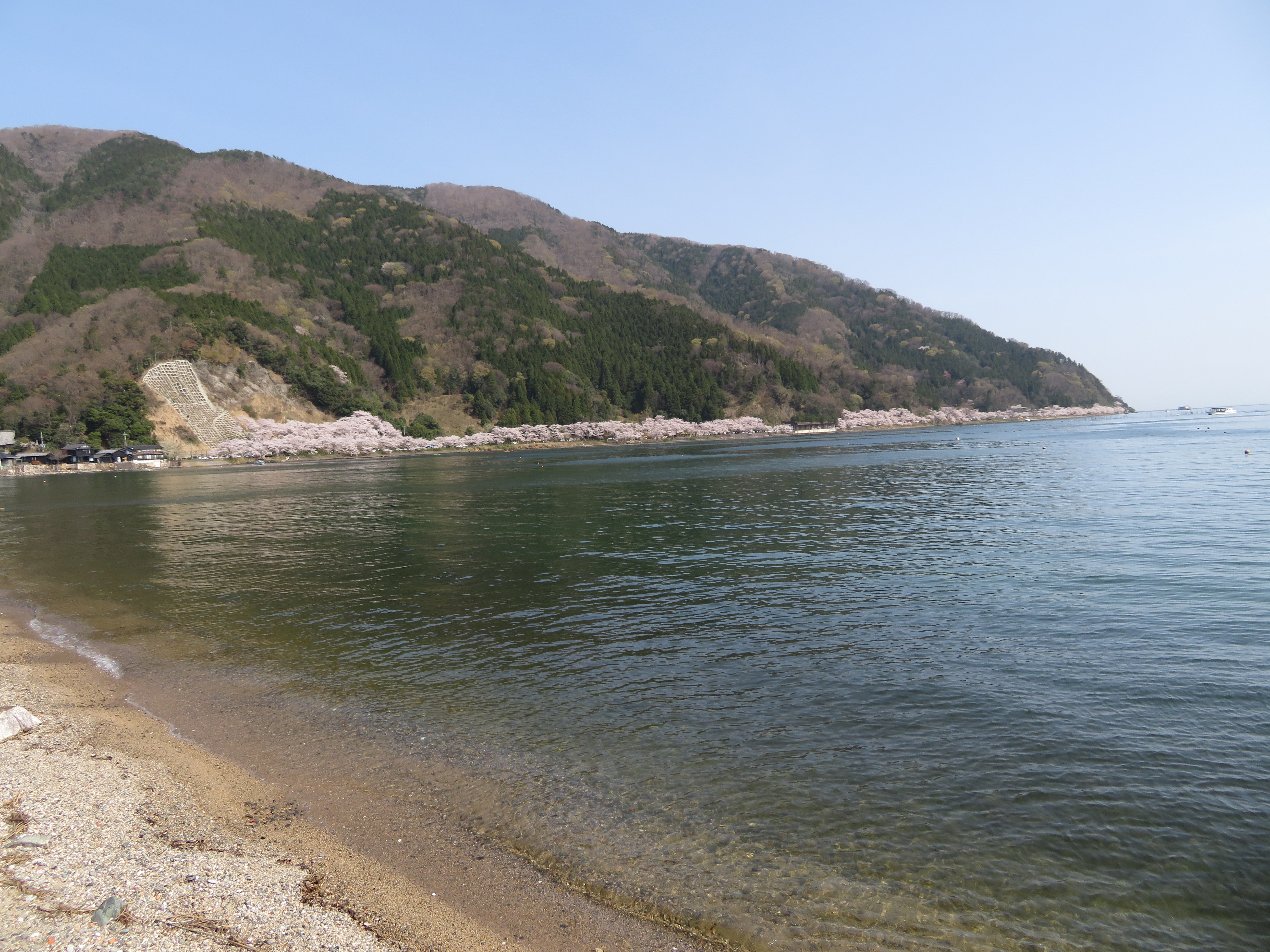 | 長浜から近江塩津で乗り換えて、40分弱で最寄駅マキノに着きました。 私は運良く、駅のレンタル自転車が借りられましたが、今年はコロナで シャトルバスが中止となり多くの人が4kmの道を歩いていました。 桜は満開でしたが、車道ですので車の往来が激しくて ゆっくり桜の中を通ることは出来ず、期待外れでした。 |