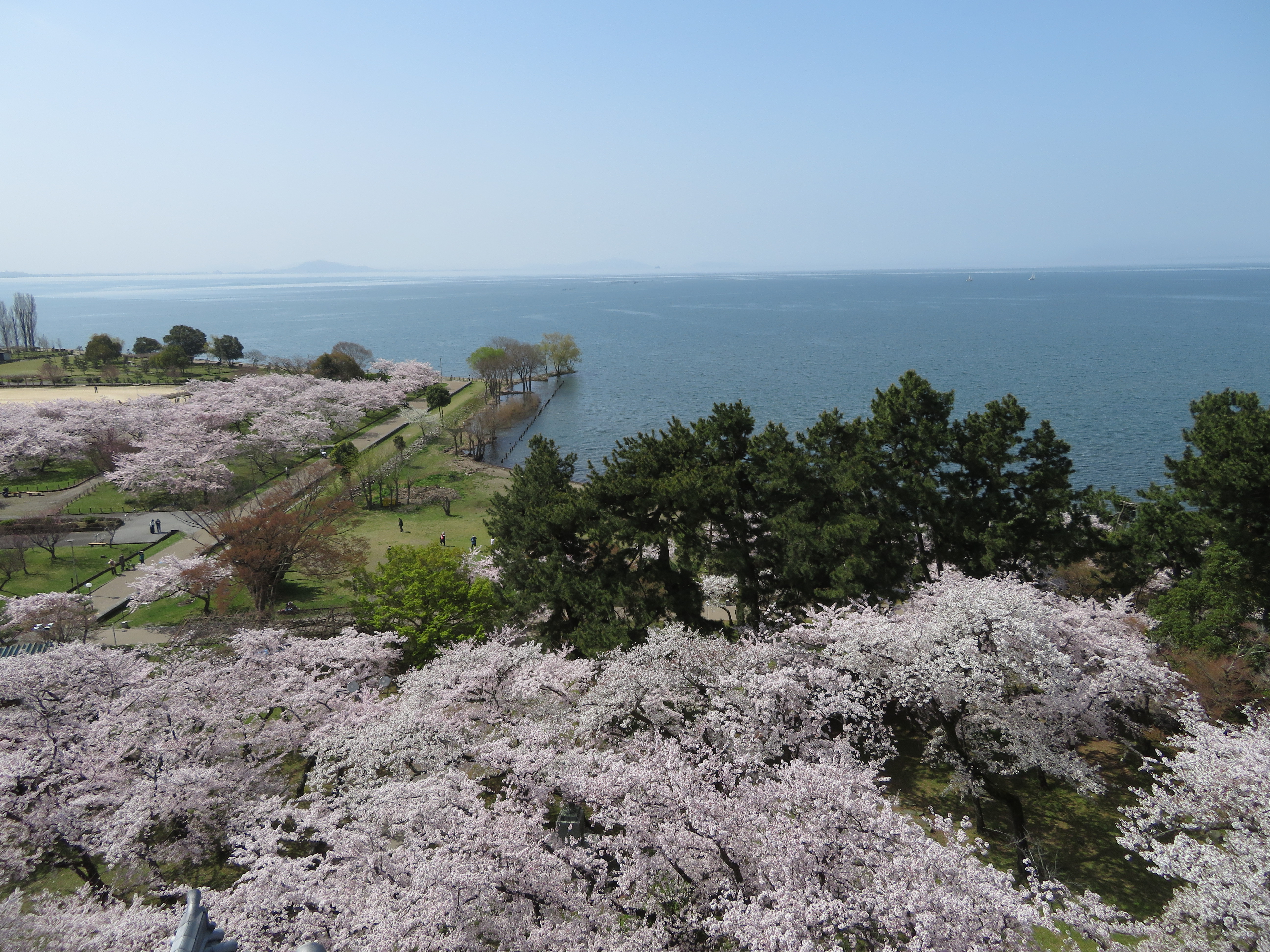 | 長浜城は、豊臣秀吉が初めて城主となった城です。「さくら名所100選」に選定 されていて、満開の桜を楽しめました。 |
