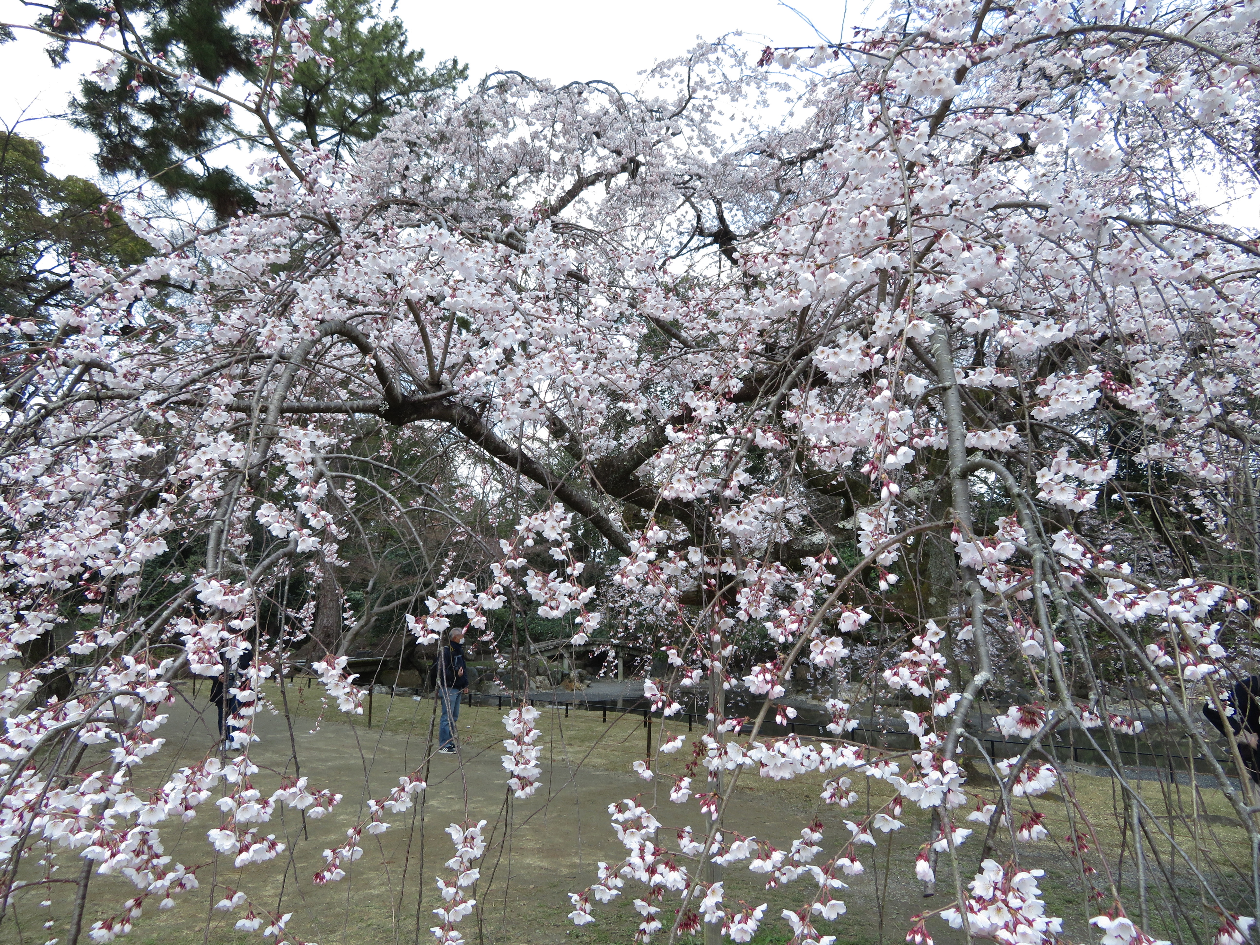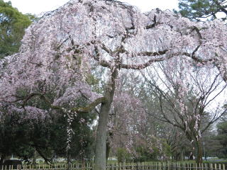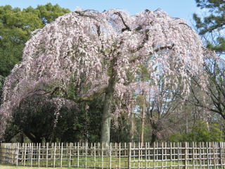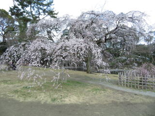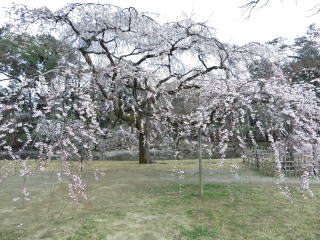 | 近衛邸跡の糸桜は六分咲き。愈愈、桜の時期の始まりです! |