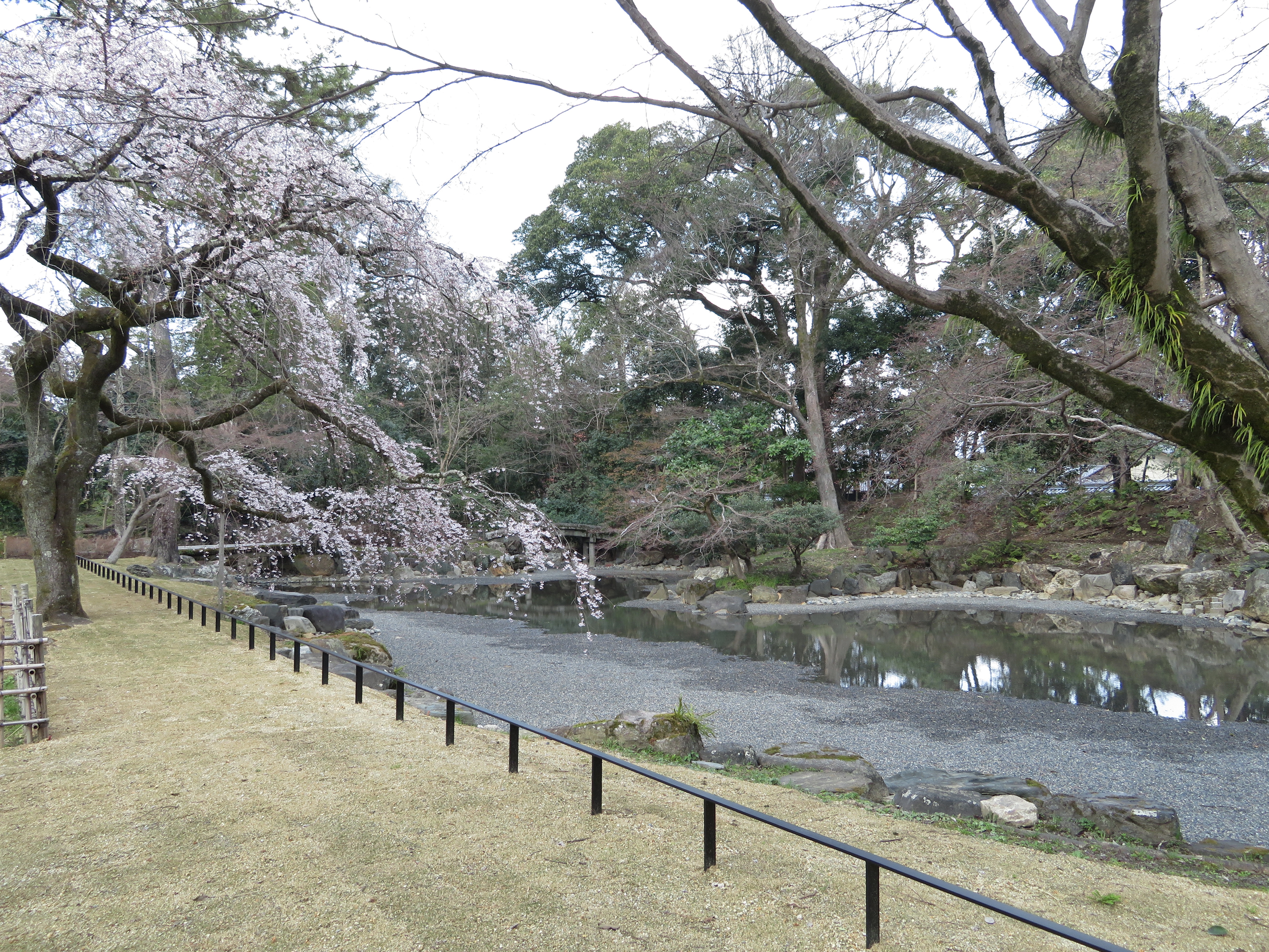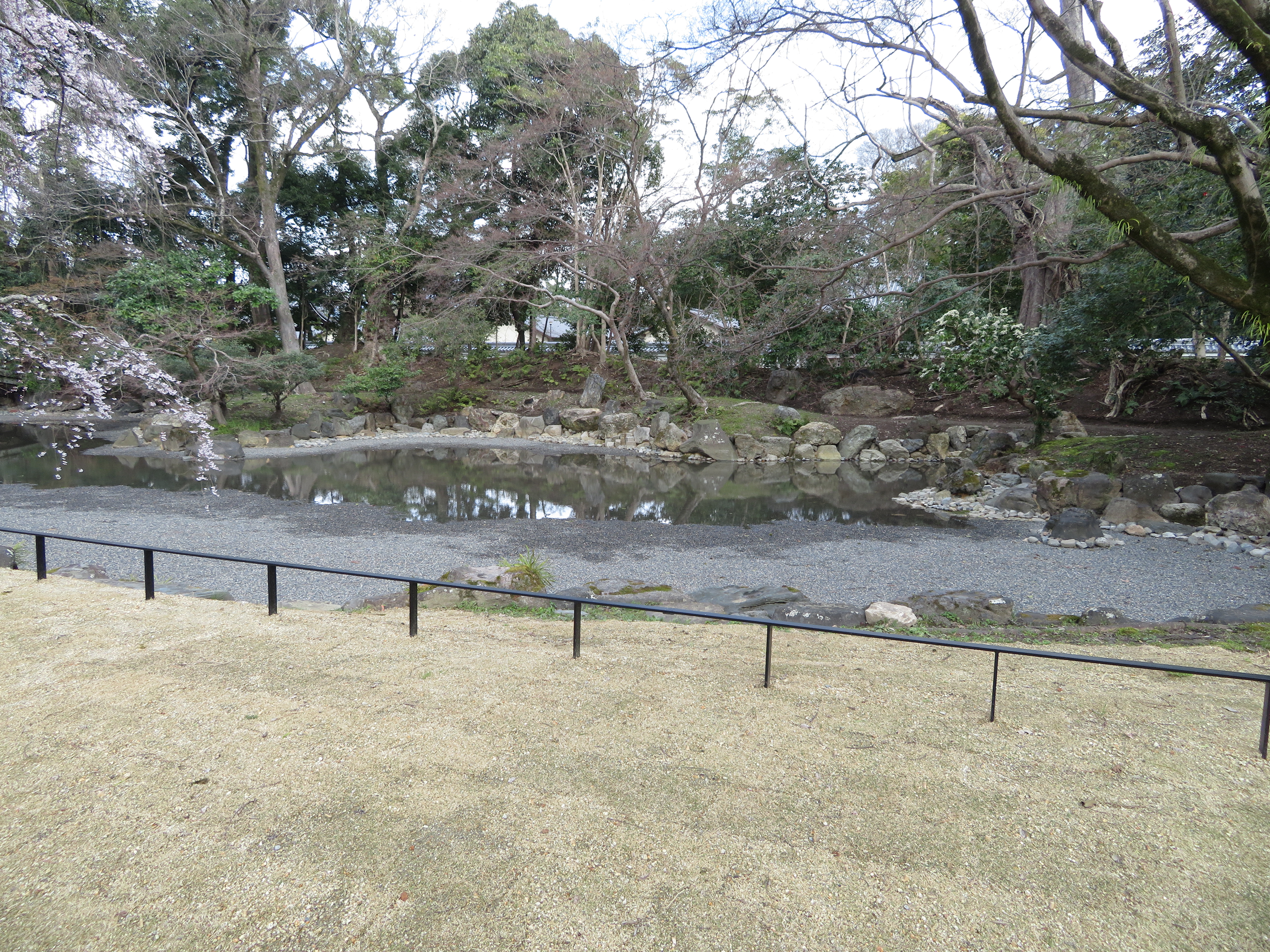 | 以前から近衛邸庭園が余り目立たなく、もっと整備されたら良いのにと思っていたのですが、 去年から工事が始まり、庭も時間を掛けて手入れされ、囲っていた生垣が取払らわれて、 広々と開放感に溢れた近衛邸跡になりました。 |