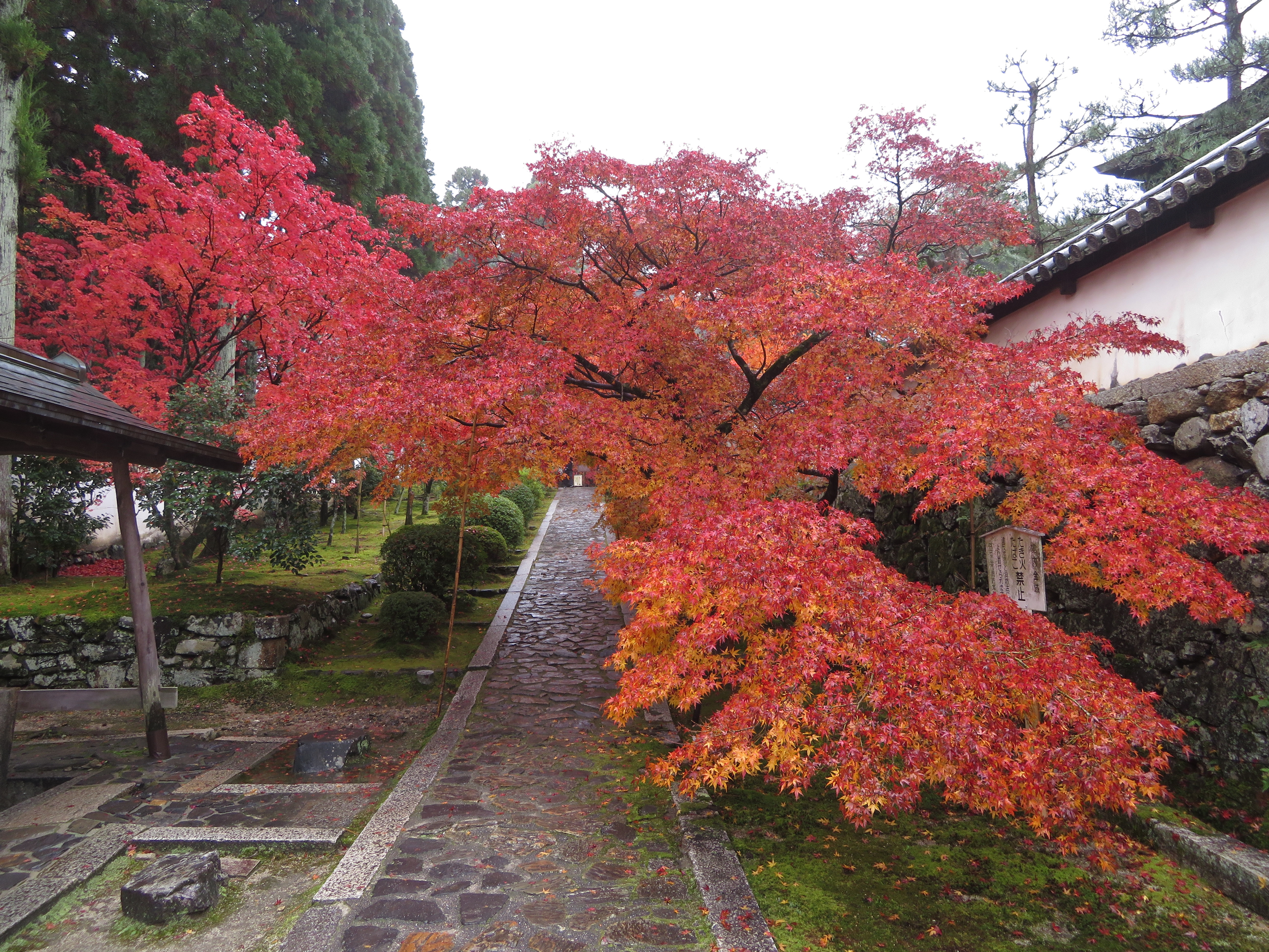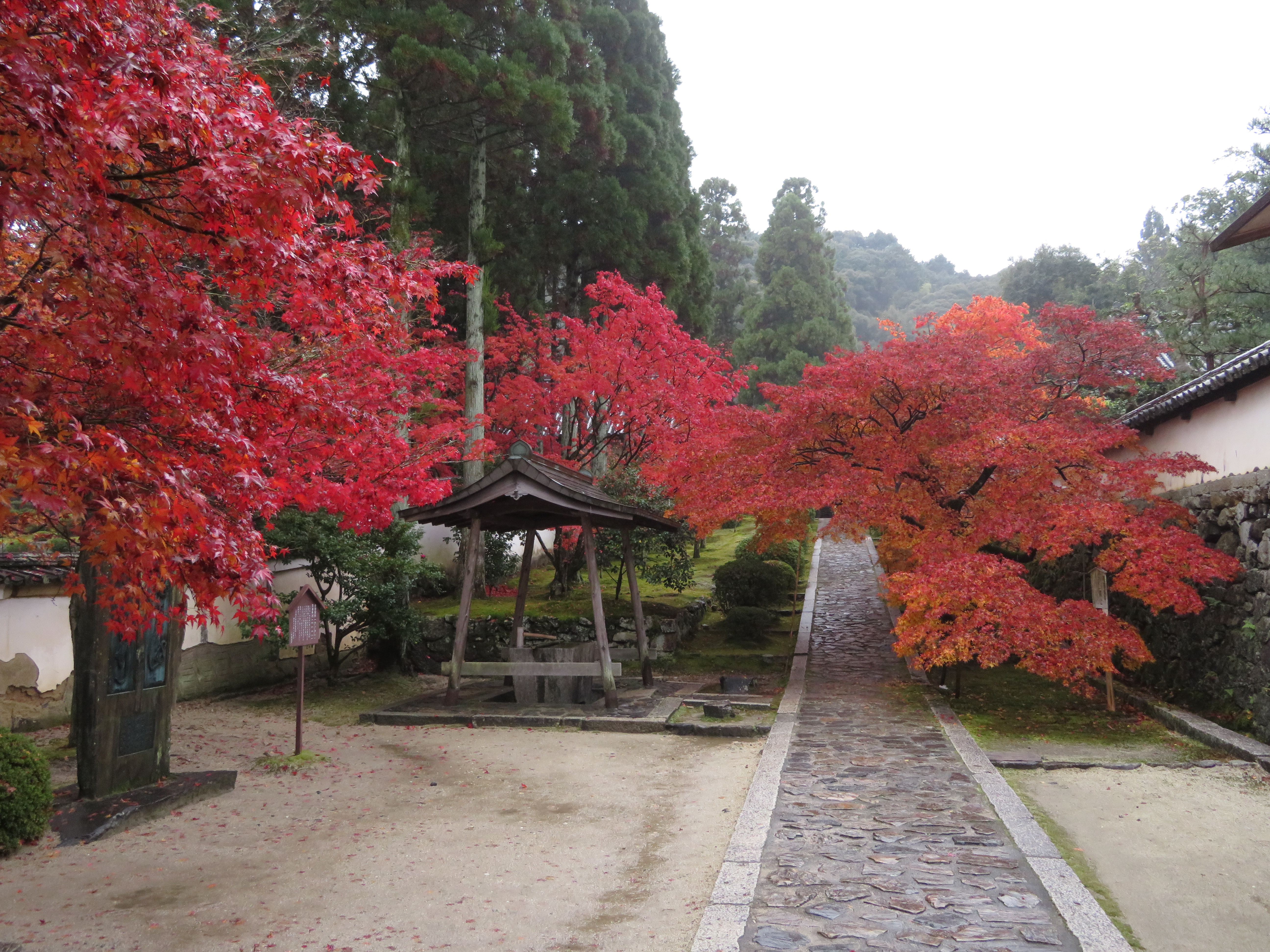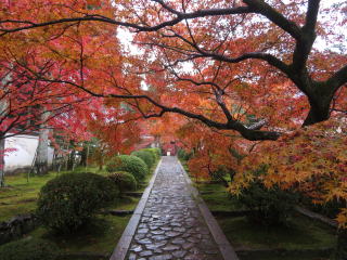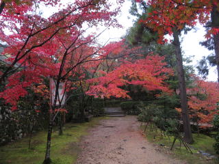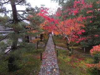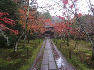 | 当初の計画では、一休寺の紅葉と近くの観音寺の国宝十一面観音を見る予定でしたが、 朝からの雨で気勢が殺がれて、観音寺は諦めて昼過ぎの遅くに家を出ました。 |