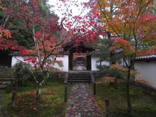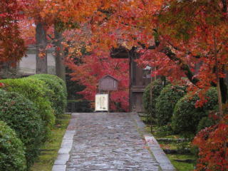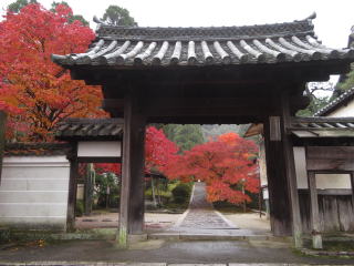 | 52年前は、一休寺・観音寺・蟹満寺を廻る贅沢な見学会でした。今回は一休寺の紅葉と 肖像彫刻の傑作である一休禅師像を見たいと思って来たのですが、禅師像は本堂の奥 におられました。以前は髭が見える程、間近で見られたのですが・・・ 雨が降ったせいか人も少なく、綺麗な紅葉はゆっくりと見ることが出来ました。 |