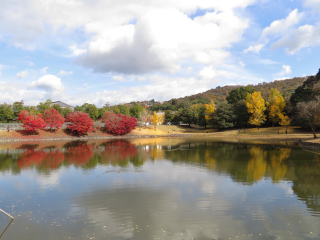 | 近くを歩いていたら綺麗な紅葉が見えたので、何の建物かなと思っていたら、 旧奈良県公会堂とシルクロード交流館が一体化して出来た建物だそうです。 広々とした芝生が気持ち良く、盛りの紅葉が綺麗でした。 |