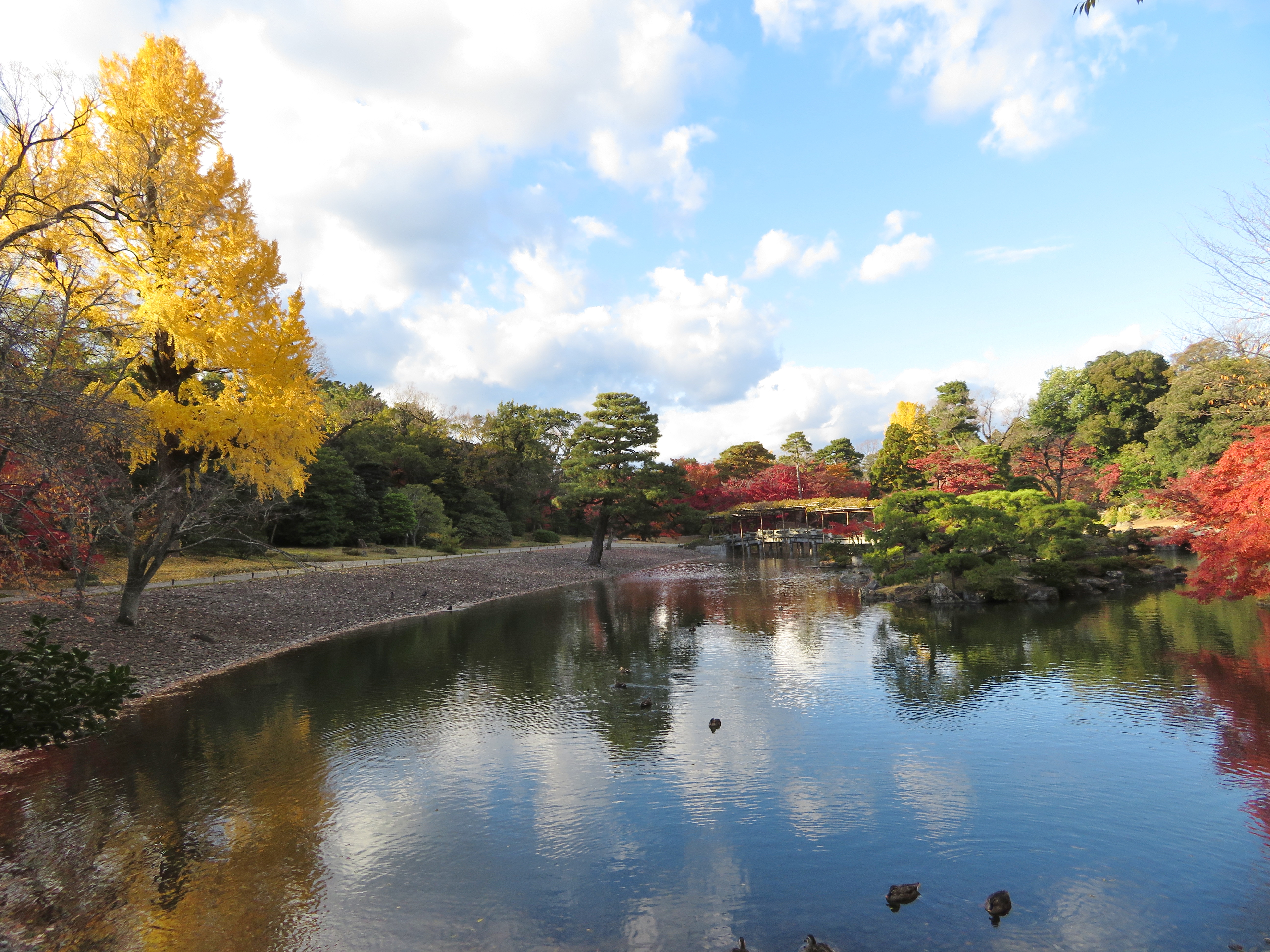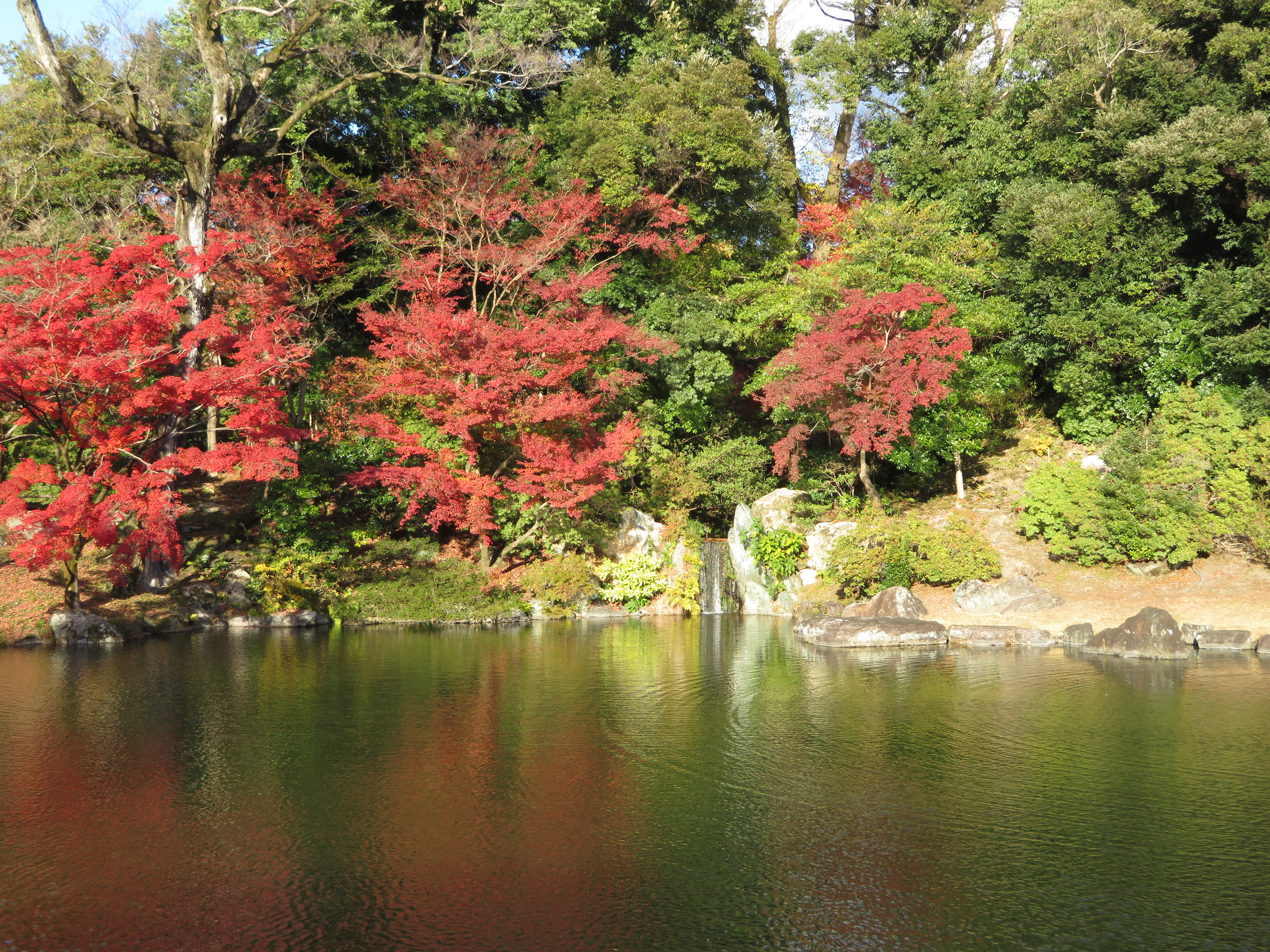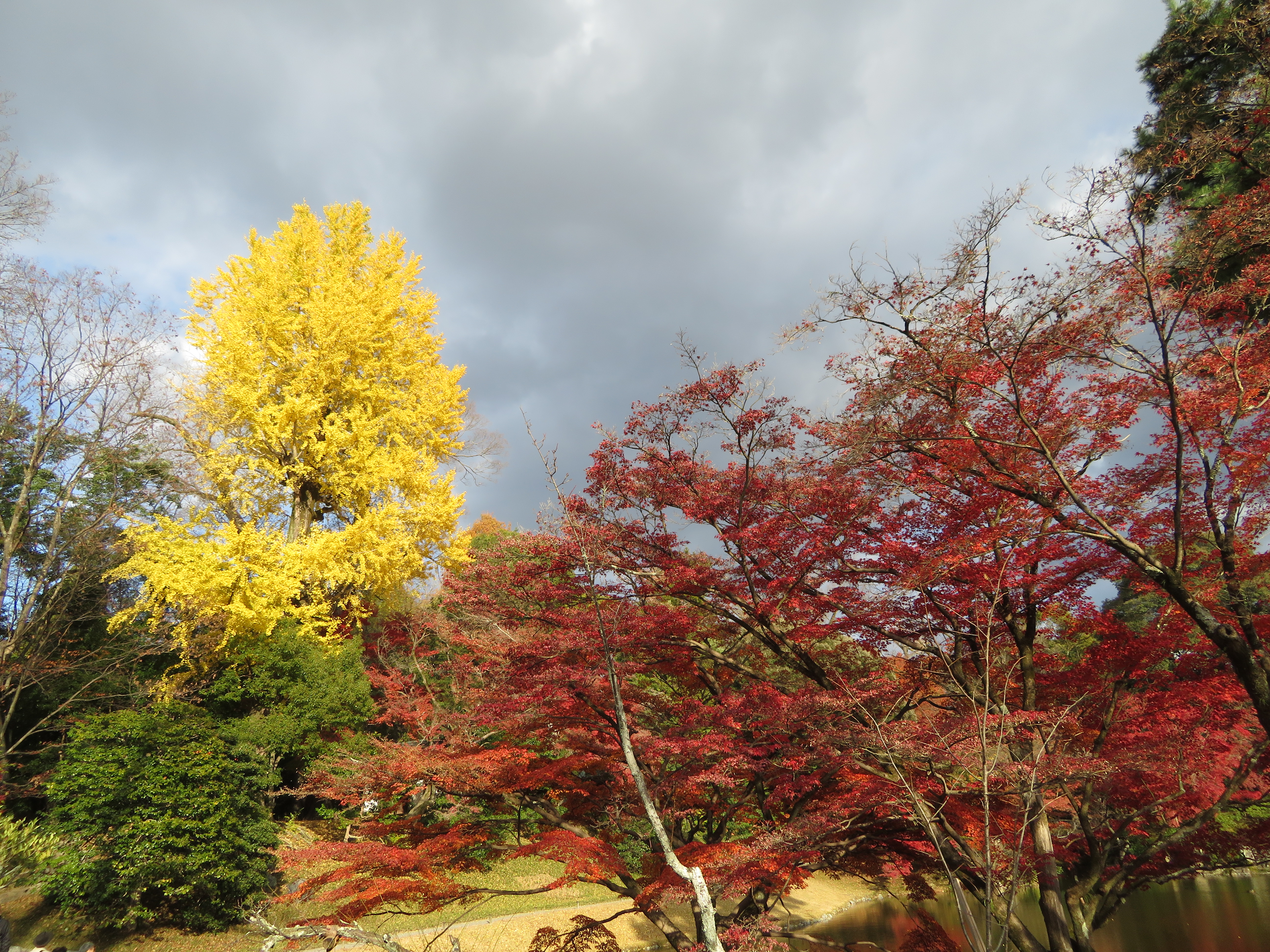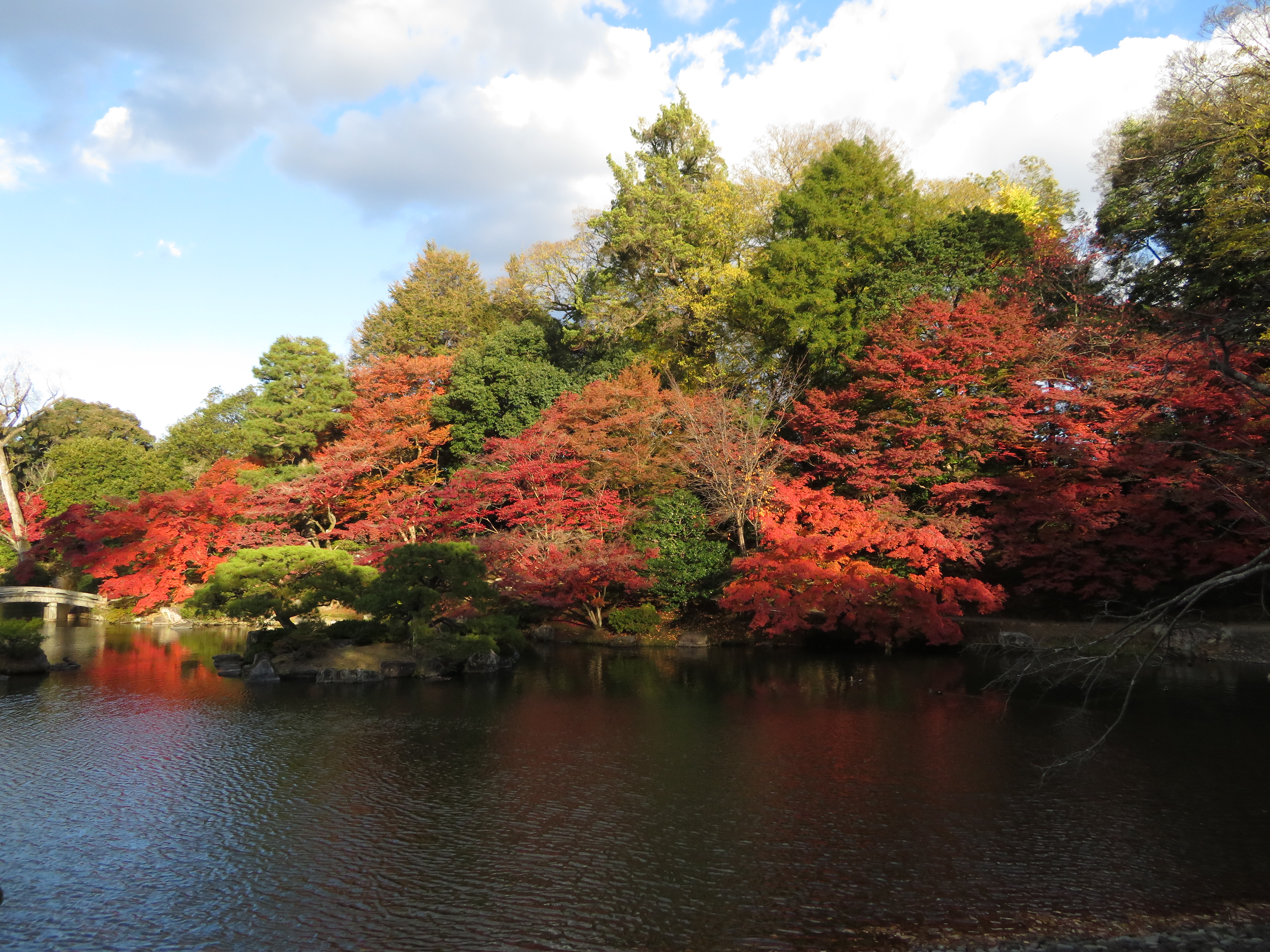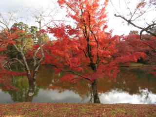 | 前日に思い立って仙洞御所の当日受付に行きました。紅葉の時期はダメかなと思って いましたが、12月に入って観光客が減ったのか予想外に簡単に取れました。 2011年に訪れた時は、まだ予約制だけだったので希望する日が取れず、 予約出来た日は紅葉には大分早かったのですが、今回は紅葉真盛りの最高の時期 でした。宮内庁が管理する桂離宮・修学院離宮・仙洞御所の中で、紅葉は仙洞御所 が断トツに綺麗です。 |