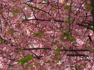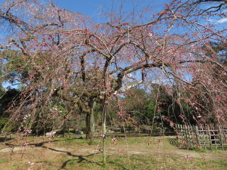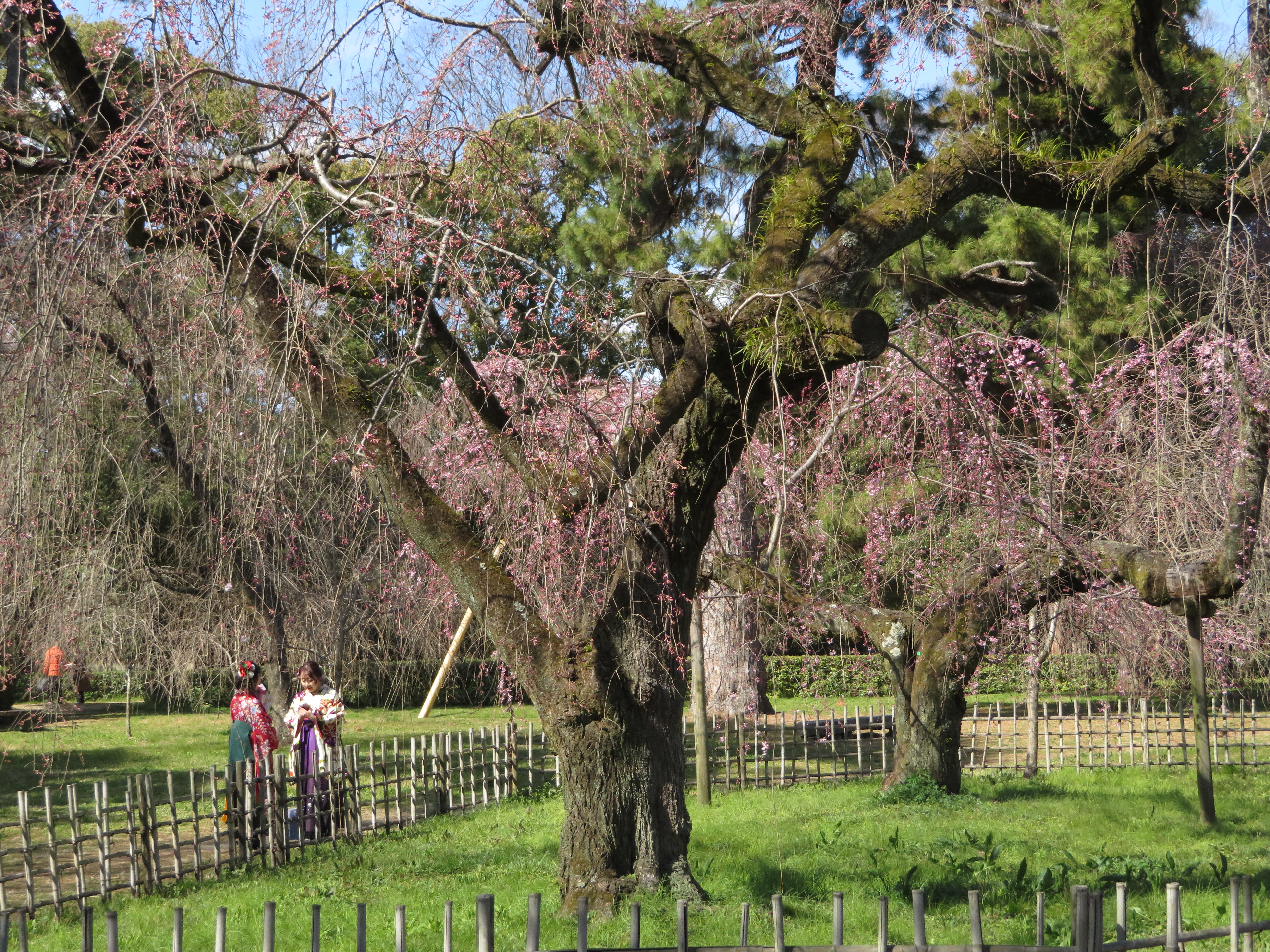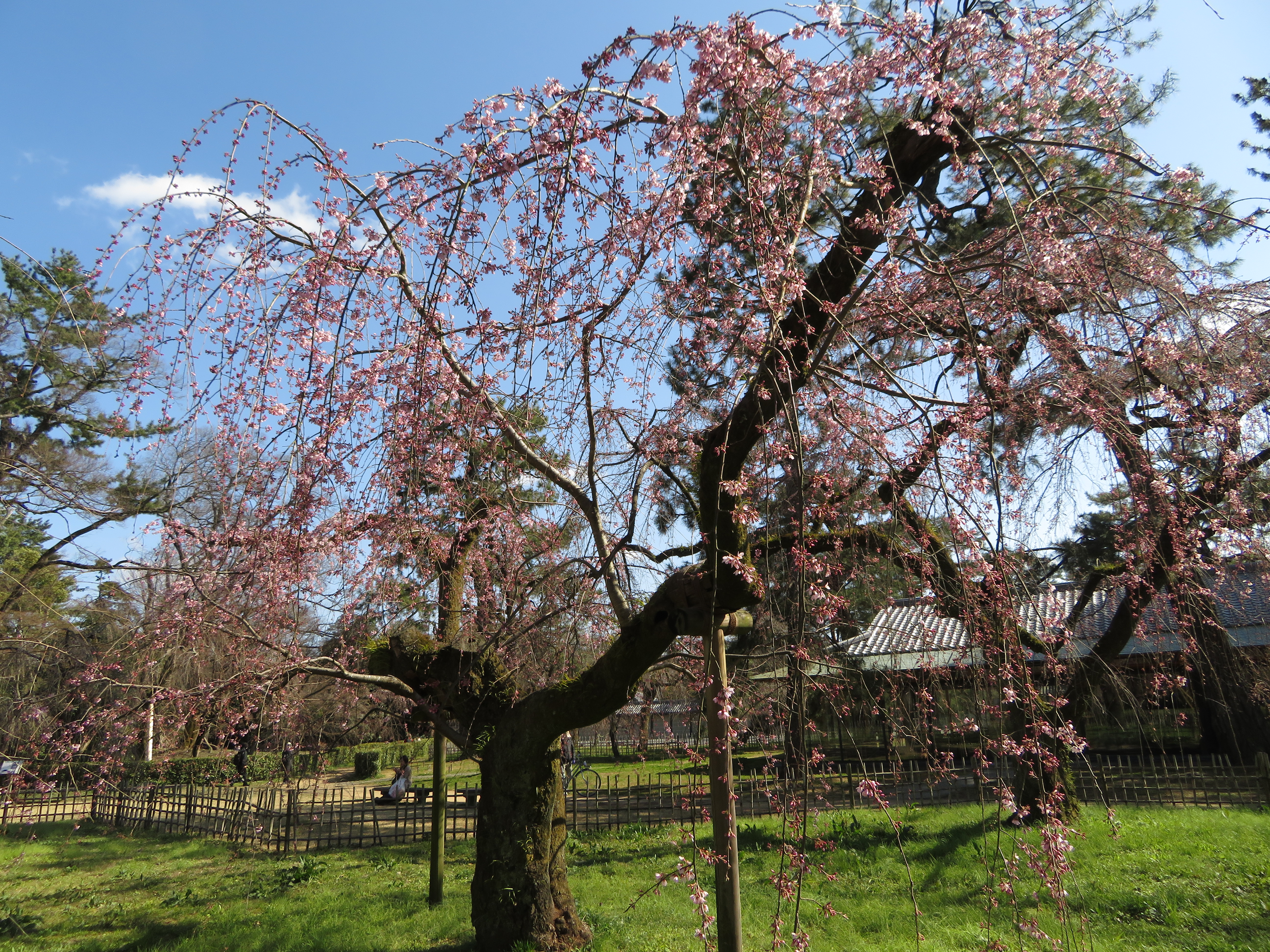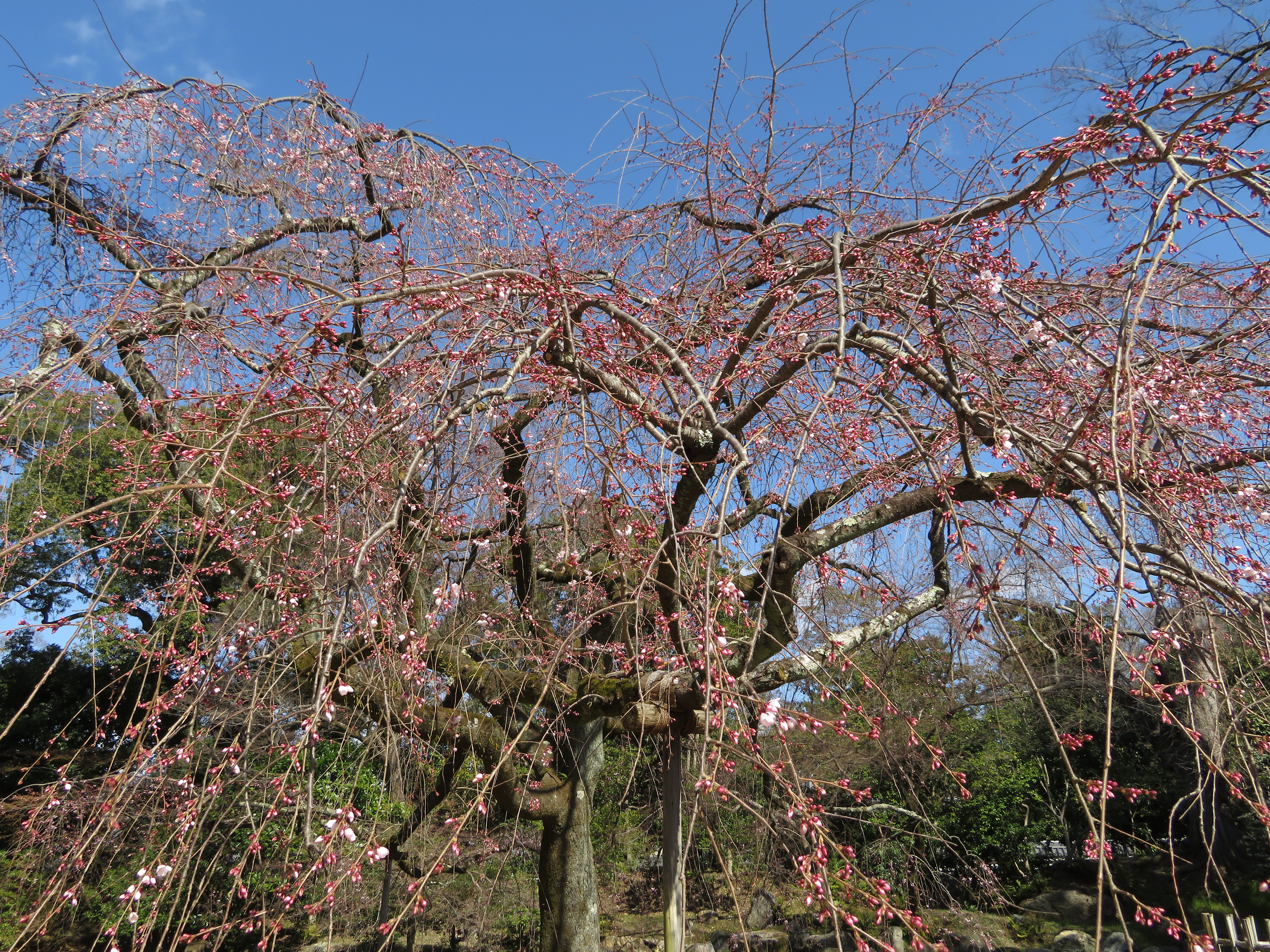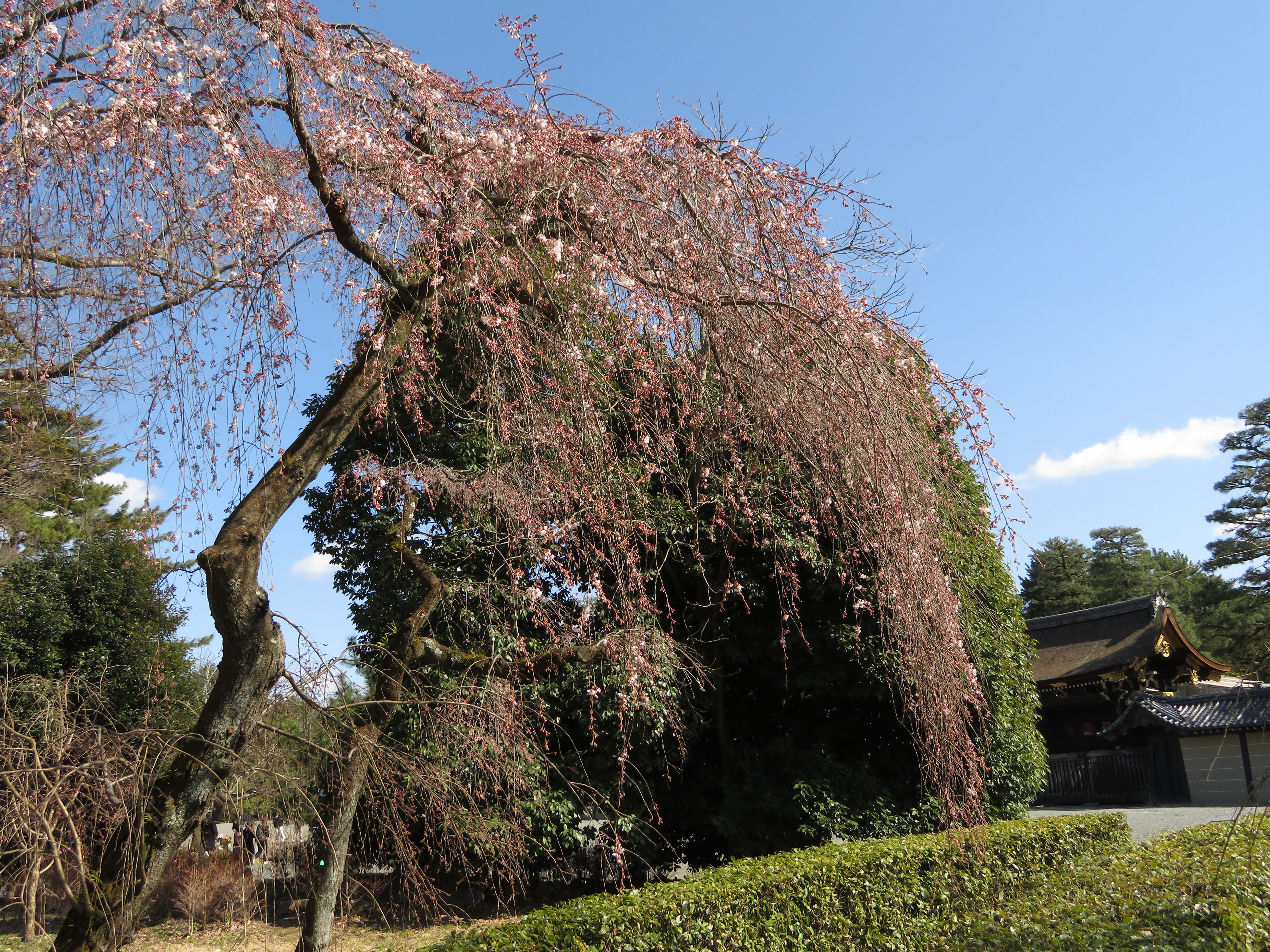 | 近衛邸跡の枝垂桜は咲き始めでしたが、すぐに見頃になってたくさんの人が訪れます。 |