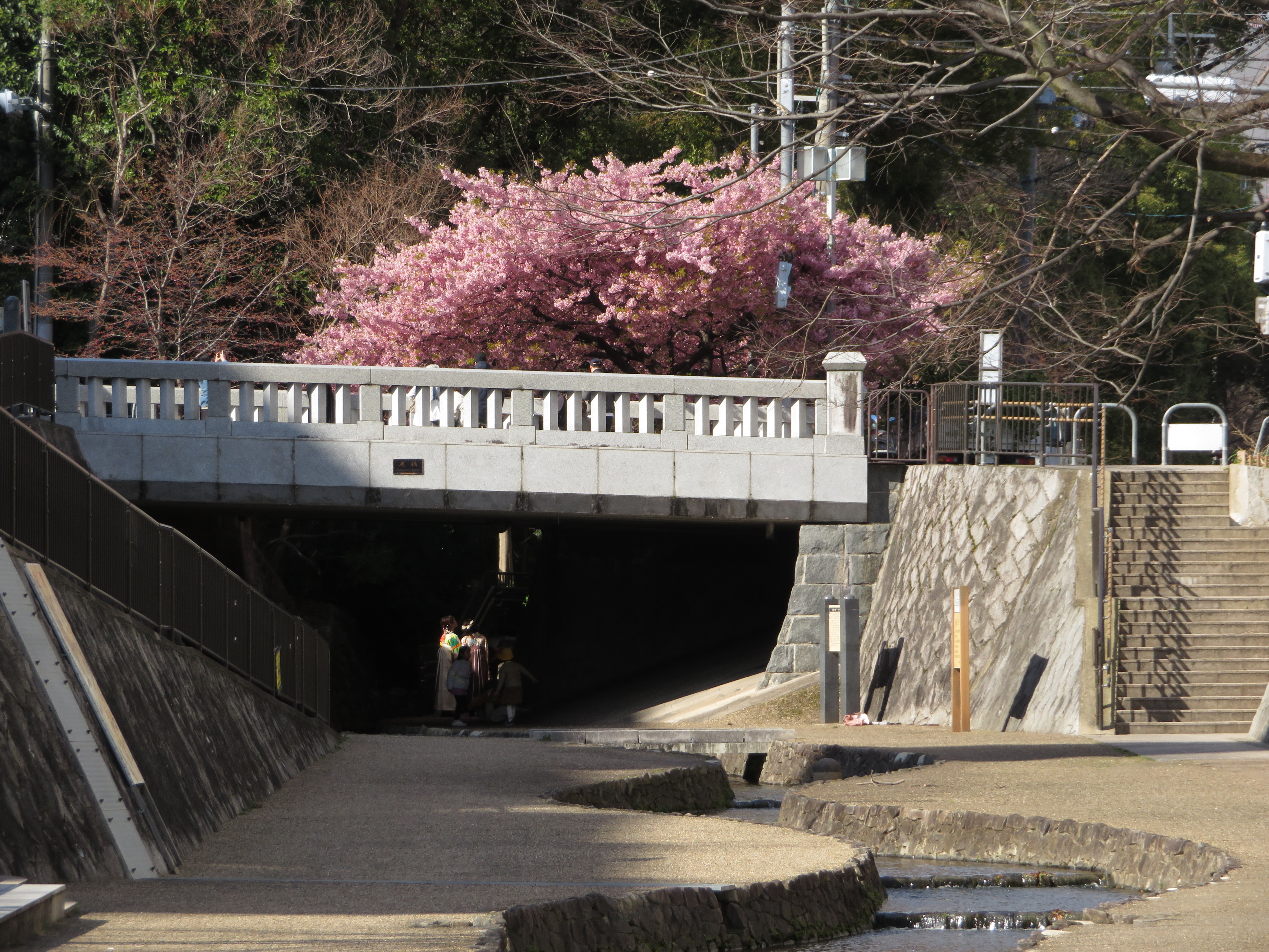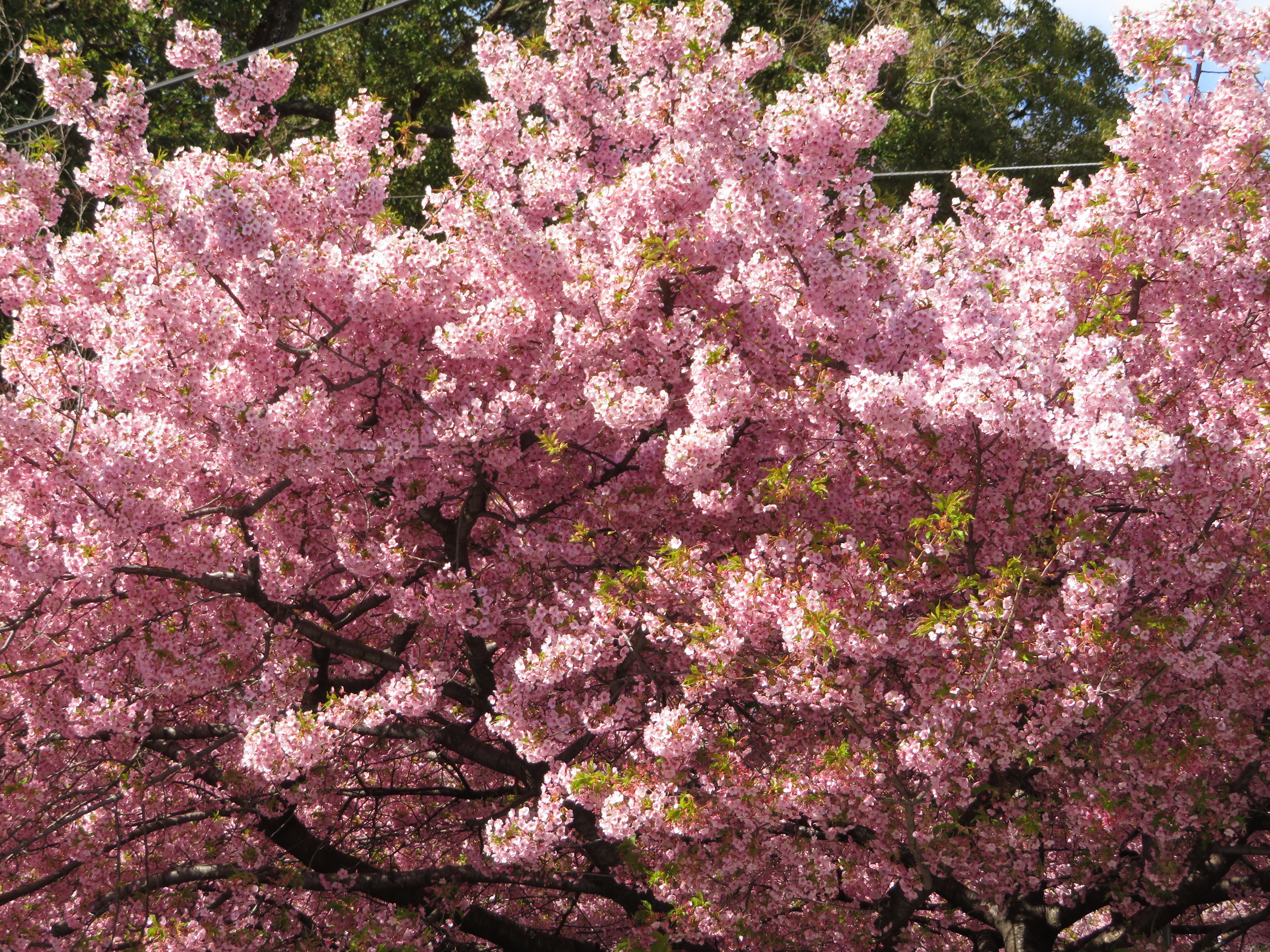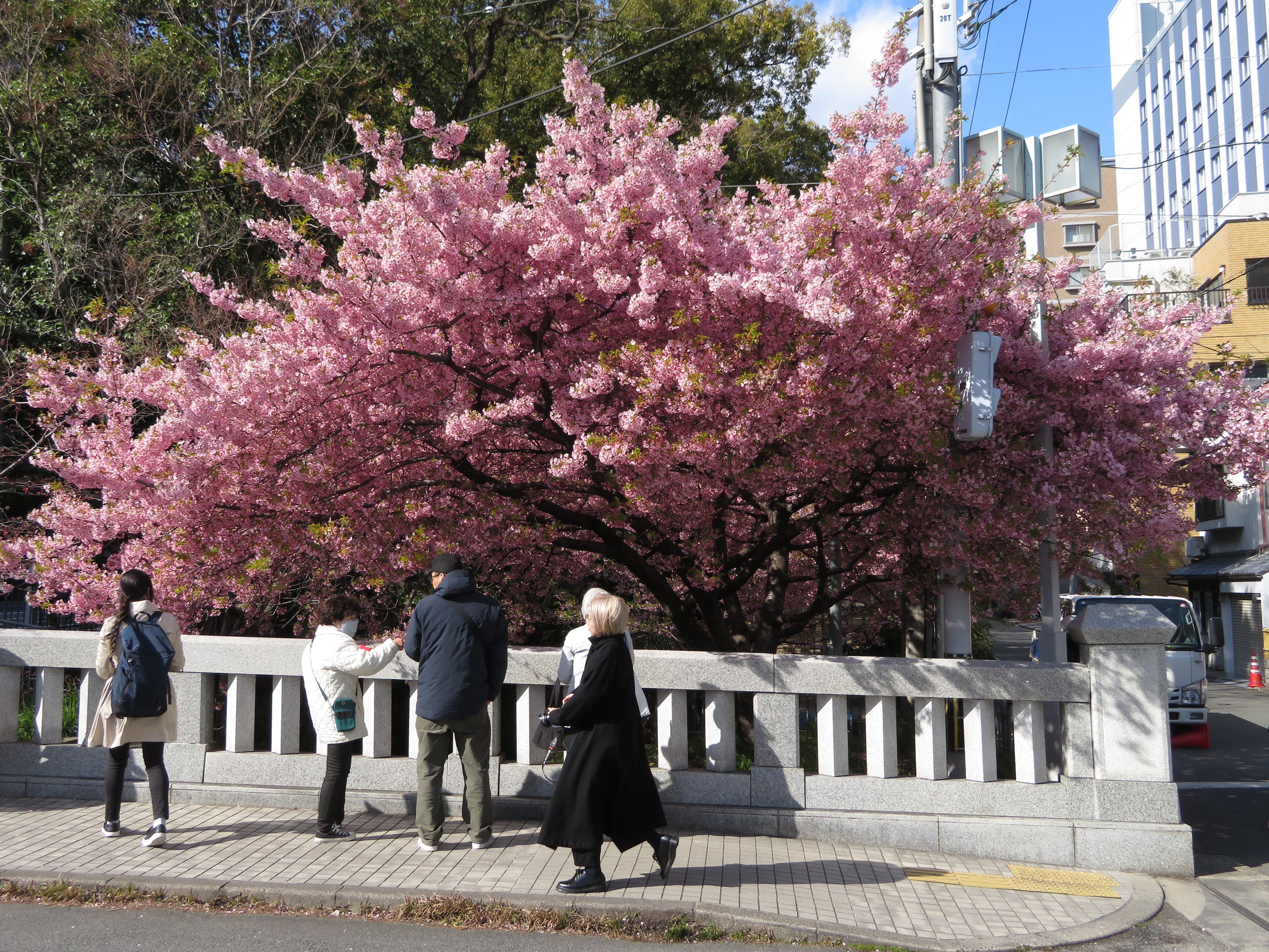 | 河津桜が満開で遠くからでも目立ち、人が集まっていました。 |