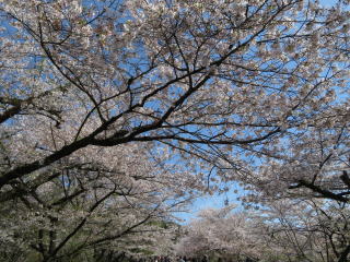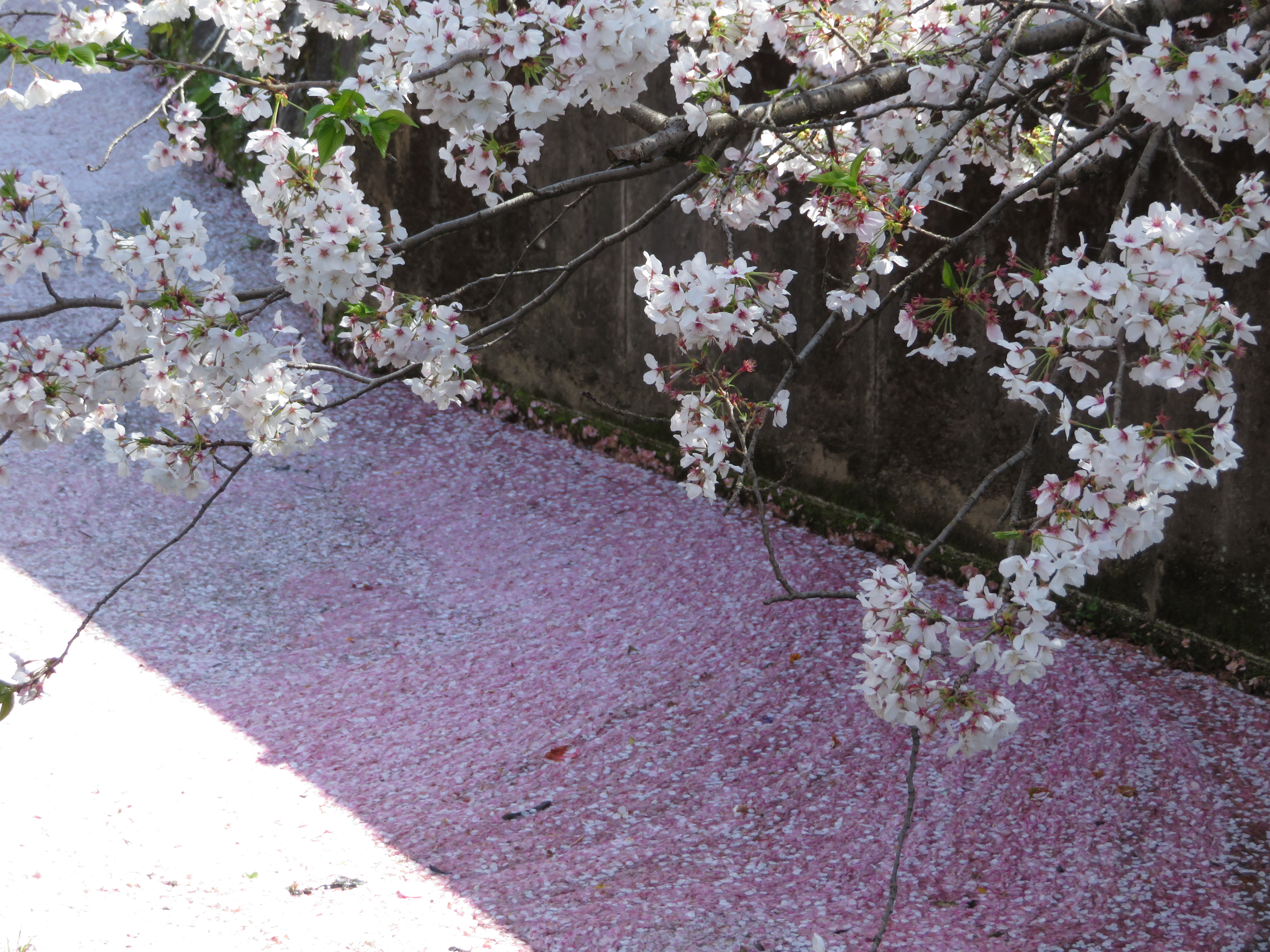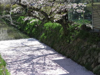 | 前から五日過ぎて4月10日ともなると、さすがに観光客も大分少なくなっていました。 でも桜はまだまだ綺麗で、花筏も見られて良かったです。 |