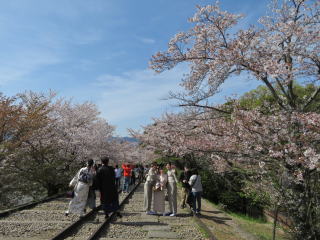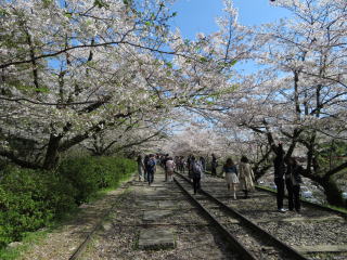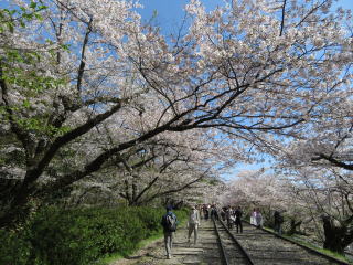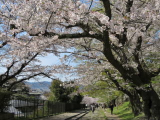 | 哲学の道から南禅寺に出て来て、水道橋の裏から久し振りに蹴上インクラインに 行きました。10日の平日とあって人も少なく、ここも桜はまだまだ綺麗でした。 |