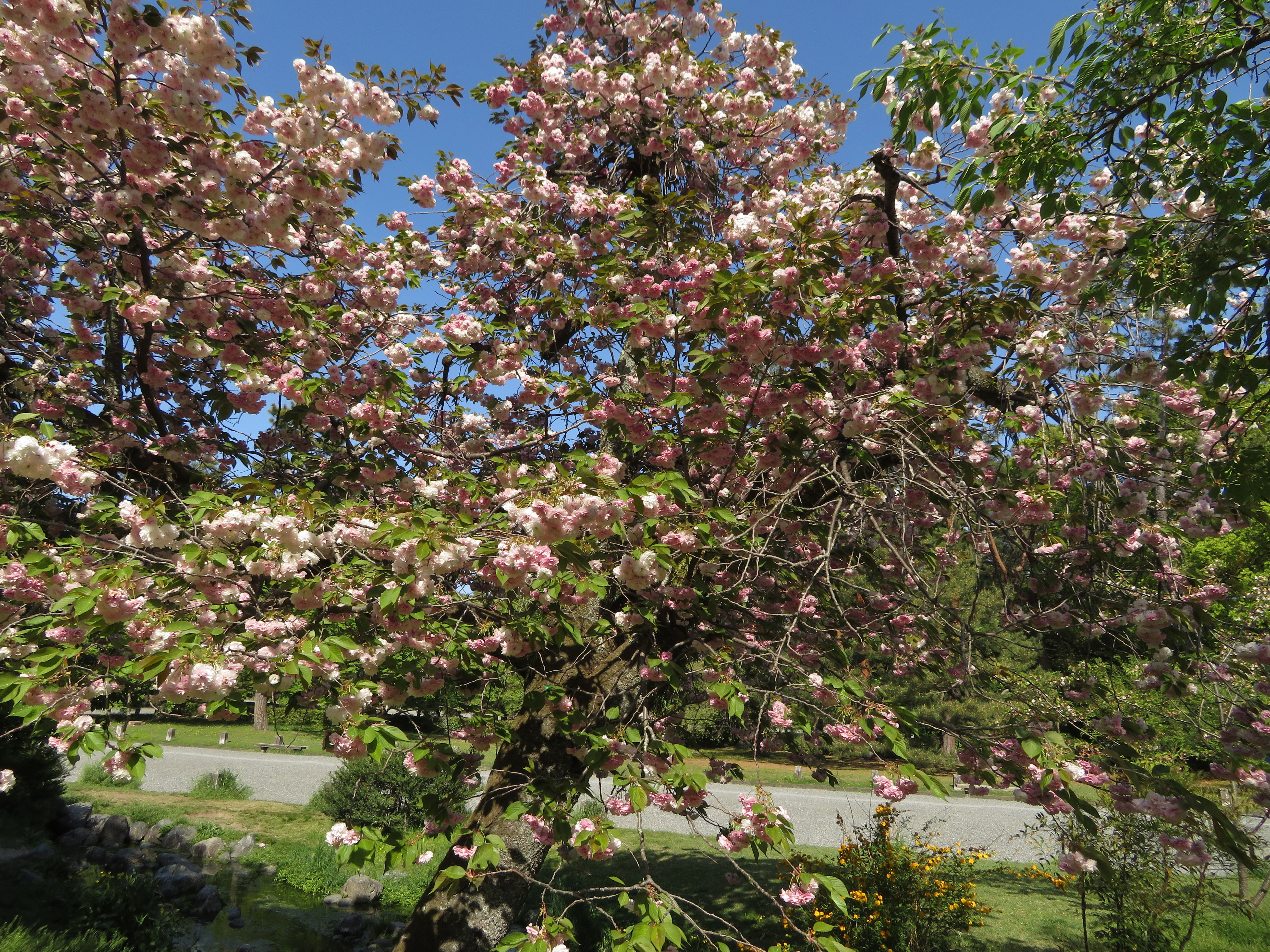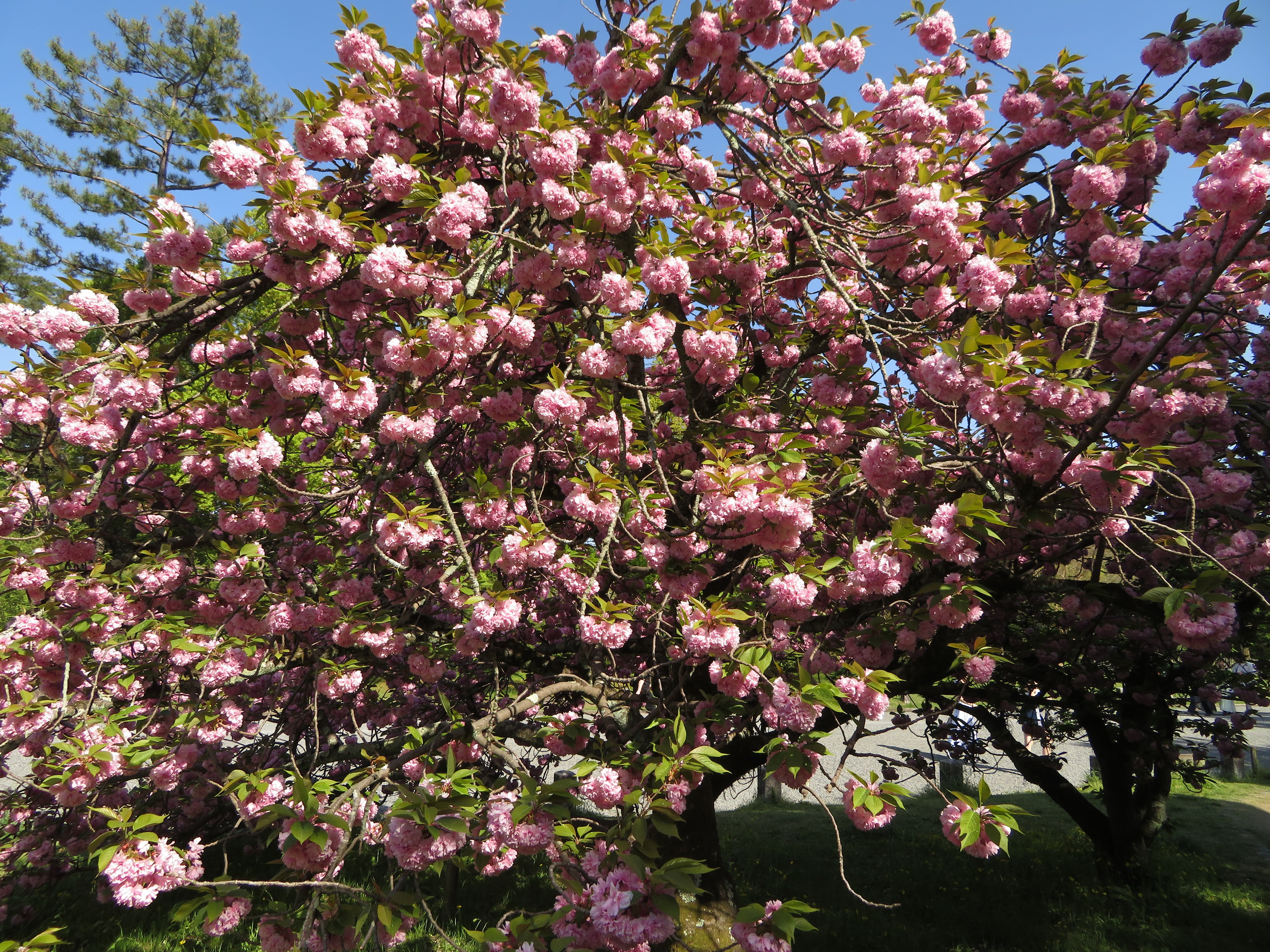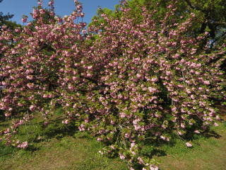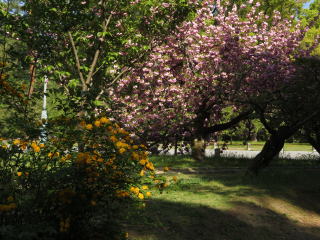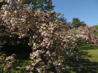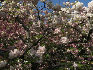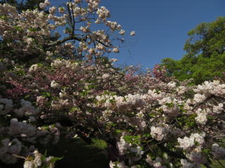 京都の最後の桜が、此処出水の小川の八重桜です。来ているのが殆ど外国人で、