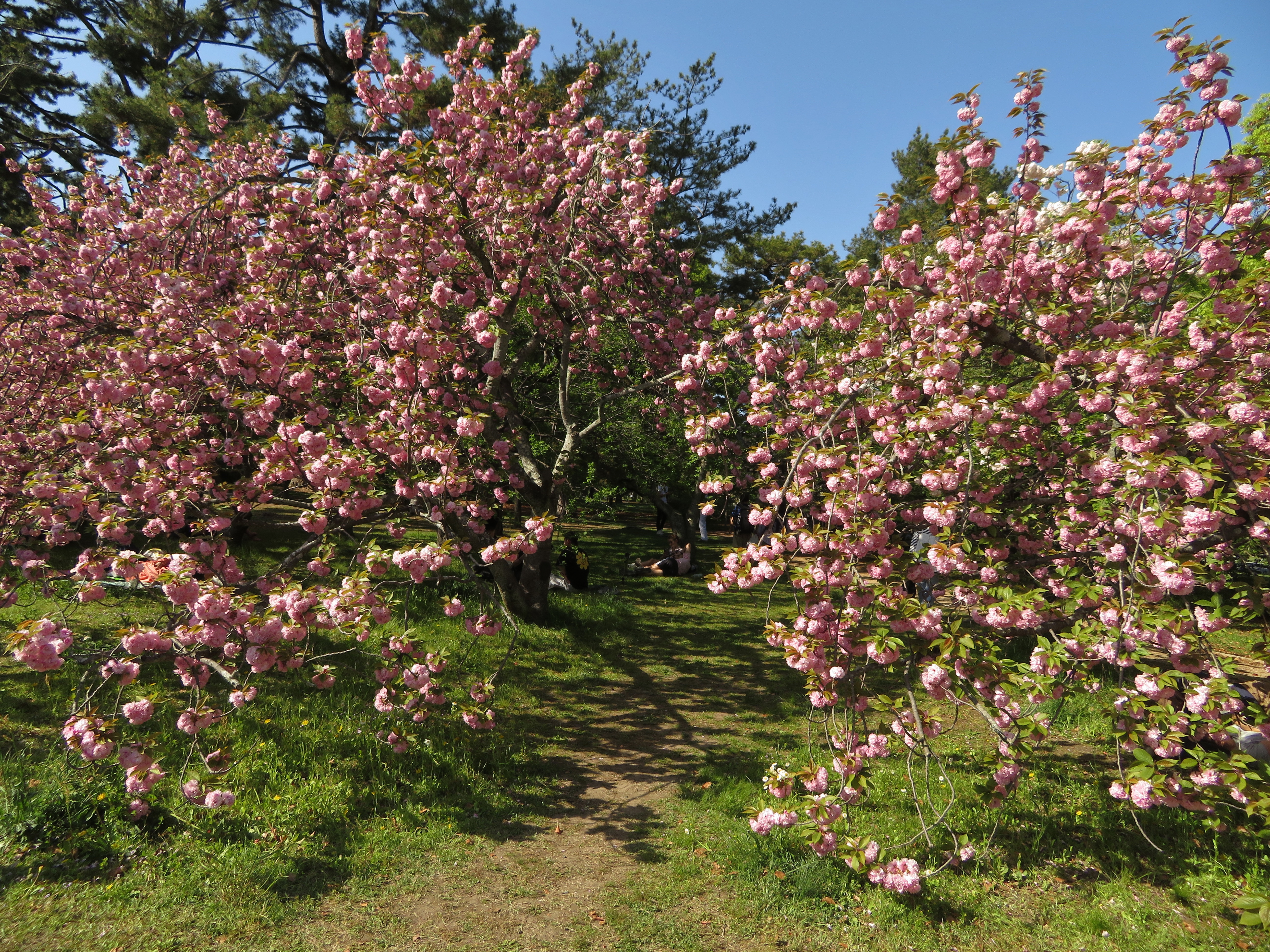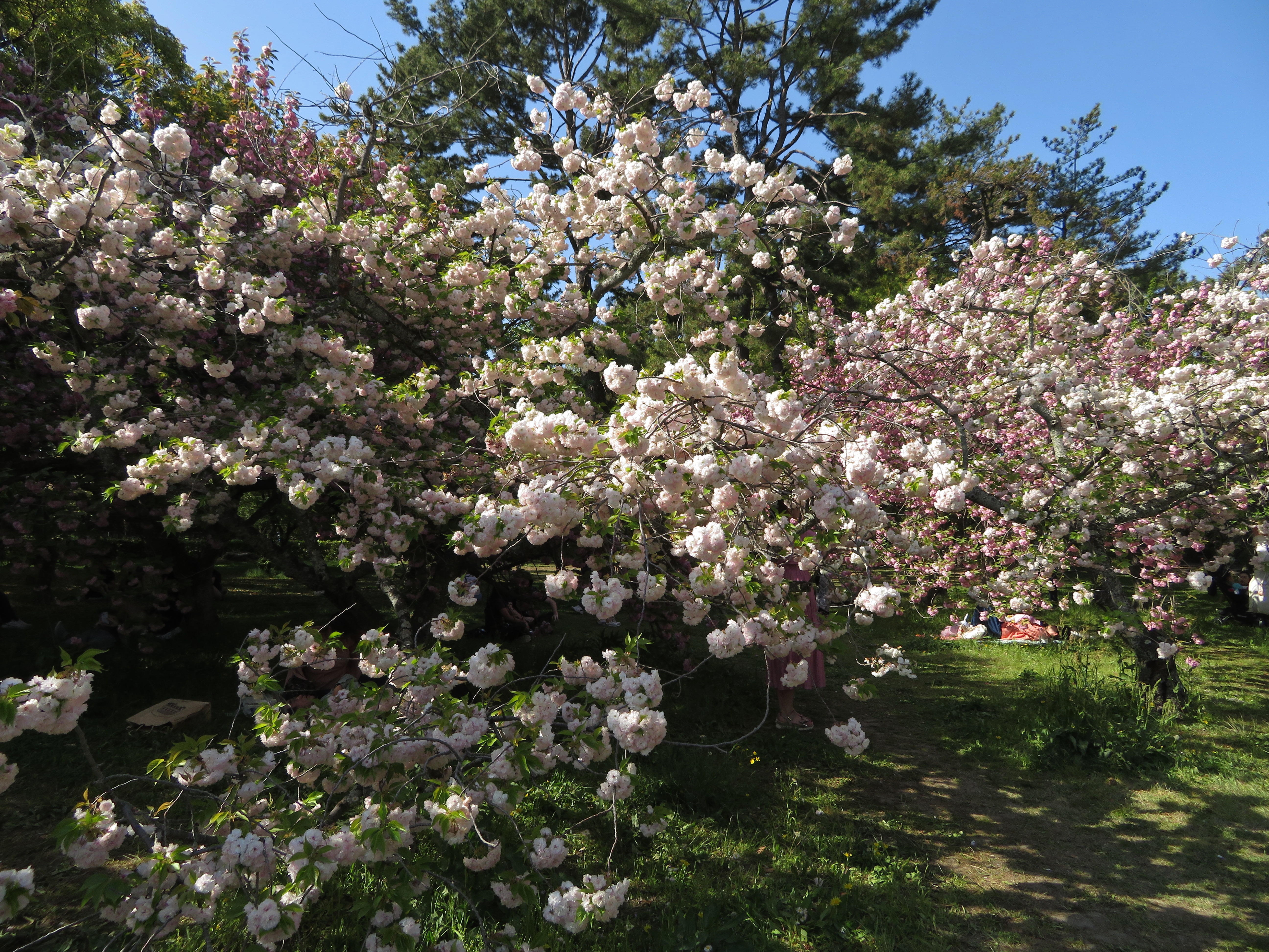 旅の疲れを癒すのか、たくさんの人達が桜の木陰に寝転んでいました。