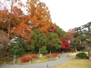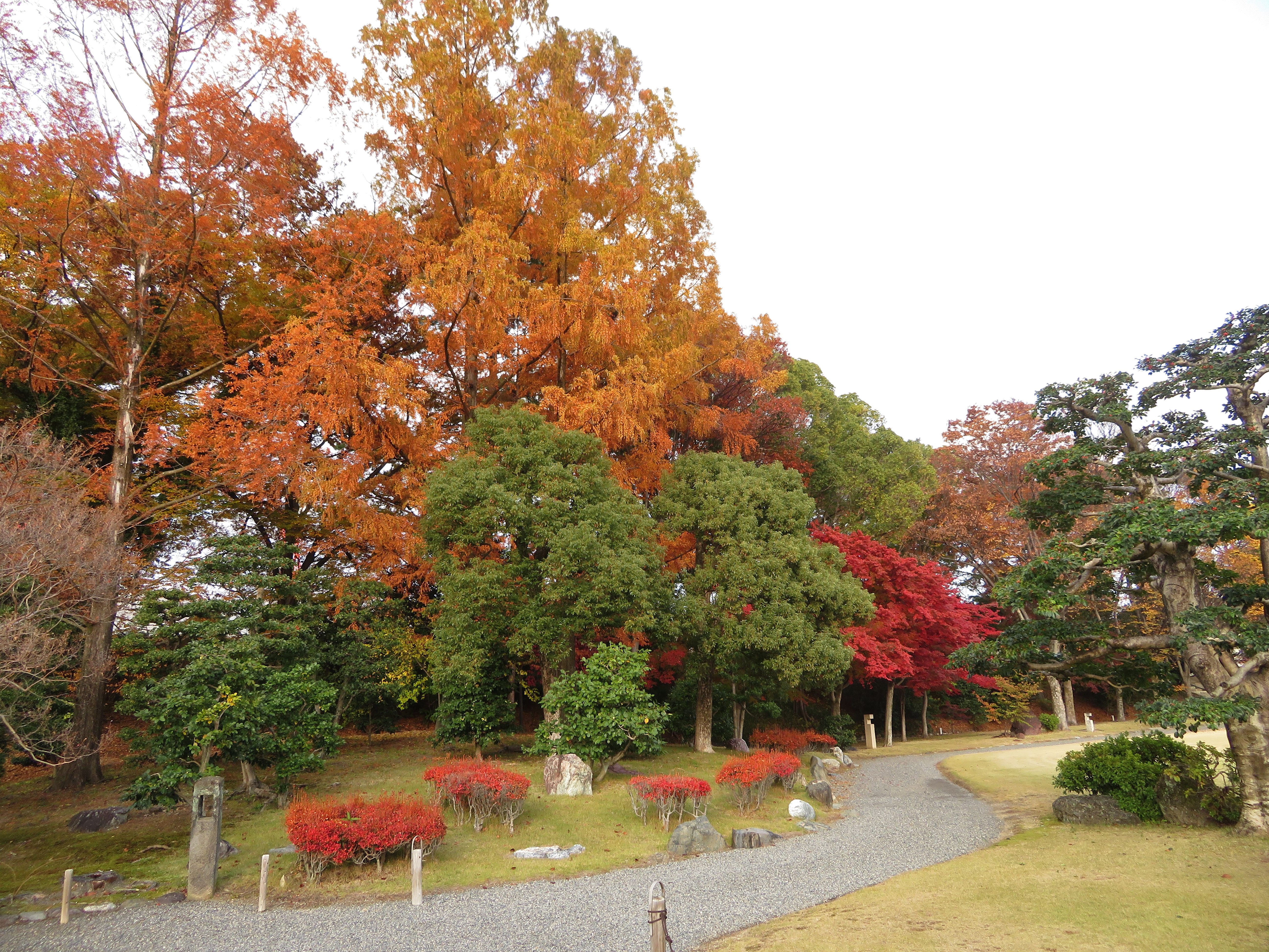 | 二の丸庭園の周りには、紅葉する樹は一本もありませんでした。 |