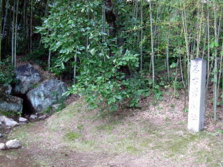 大沢池の奥に、百人一首の「滝の音は 絶えて 久しくなりぬれど 名こそ流れて なほ聞こえけれ」 で有名な名古曽滝址があります。 この歌は藤原公任(ふじわらのきんとう) (966〜1041)が詠んだのですが、公任の時代 にはすでに滝は枯れており、昔日をしのん で歌ったものです。 |