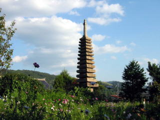 ![]() 九体阿弥陀堂から三重塔を眺む |