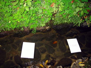 | 水占みくじ 200円でおみくじを買って霊泉に浮かべると、文字が浮かんで見えてきます。 |
