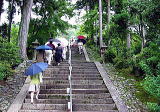 | 急な石段を上がると、パァッと視界が広がり、重厚な重層入母屋造りの本堂に圧倒されます。 |