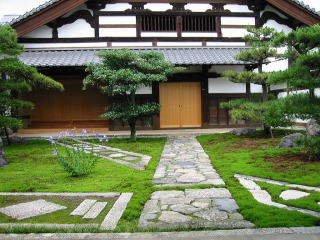 | あくる日 祇園の中の小さなお寺で、桔梗を見つけました。三室戸寺の紫陽花とは対称的に、たった一株で存在の美を示していました。 |
