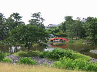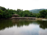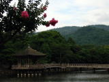 | 奈良ホテルの隣の大乗院庭園です。ここは冷暖房完備の無料休憩所で人も少なく重宝し ています。手前の木は百日紅で、花の最盛期には本当に綺麗な半円形に咲き、見事です。 |