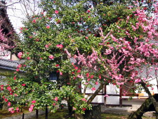 椿の他に梅も残っていて、狭い霊鑑寺の中は花で一杯でした。