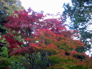知恩院三門の特別公開に行ってきました。 内陣の天井・壁・柱一面に極彩色の絵が描かれ ているのですが、近寄って見ると無数の墨で書か れた人名と住所が有り、明治の人の落書きだそう で笑ってしまいました。 知恩院は、三門・本堂・鐘楼は有名なのですが、 奥の法然上人御廟は人も少なく静かで落ち着け ます。 楓が二本、紅葉が綺麗でした。 |