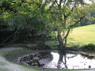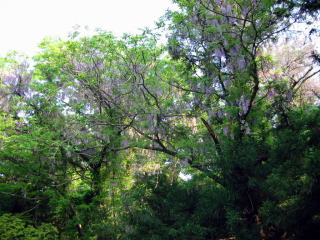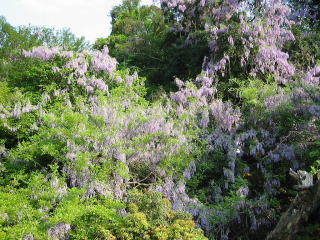 飛火野の周囲の木は、藤が纏わり付いて藤色