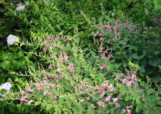 | 薬師寺から唐招提寺へ行く道脇に紫陽花と萩が並んで咲いていました。 |