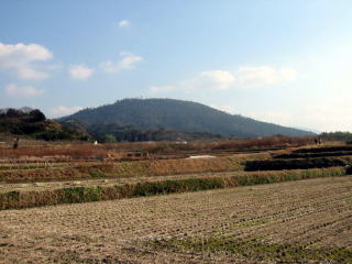 ![]() 景行天皇陵を過ぎると、大神神社の御神体で ある三輪山が見えてきます。 |