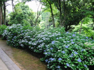 平成八年に長岡京市観光協会主催で奥之院に 至る参道に‘あじさいのみち’が整備され、27種 4500株が植えられています。 その紫陽花真っ盛りに行ったのですが、観光客 は誰も居ず、お寺の方も見当たらず、本堂・ 奥之院は独り占めでした。 毎月17日に縁日があり、その日だけ阪急大山崎 から臨時バスが運行されて賑わうそうです。 |