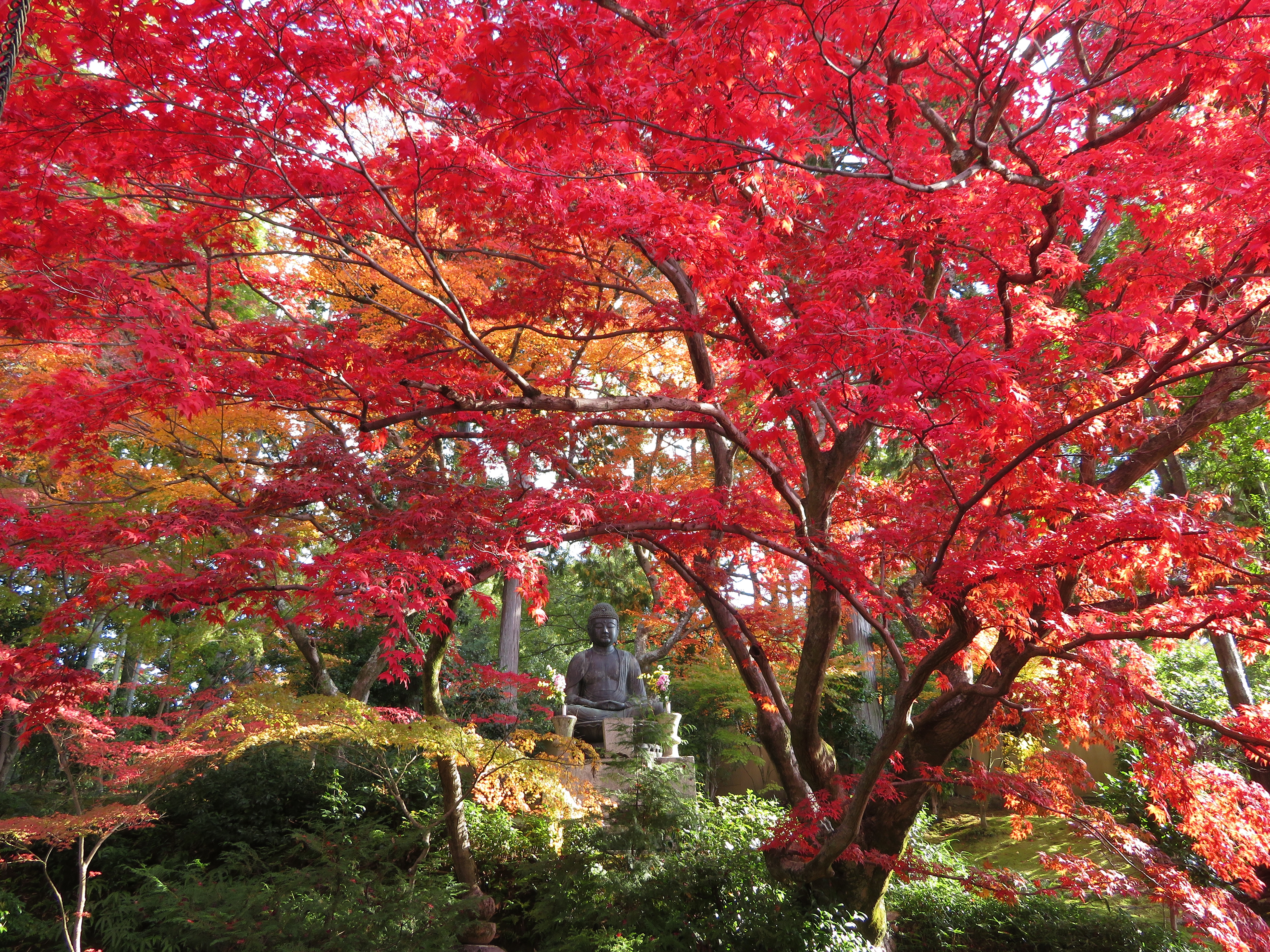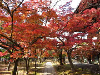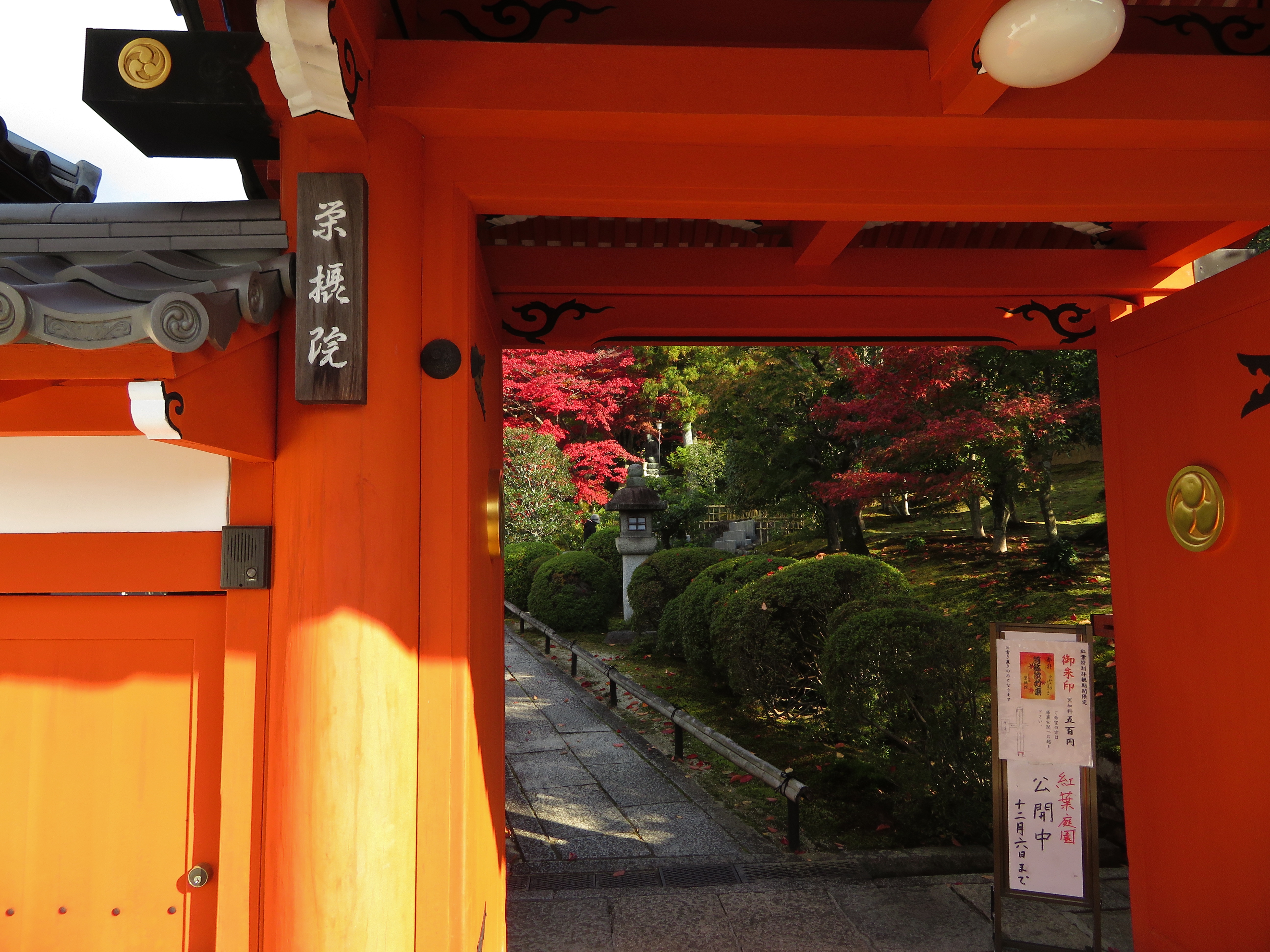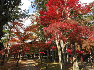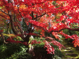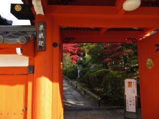 | 栄摂院は黒谷の塔中で、この時期だけ公開しています。以前は無料でしたが、 今でも志納と云う形で小さな箱が置いてあるだけです。 毎年訪れてますが、此処の紅葉の赤は見事です。 |