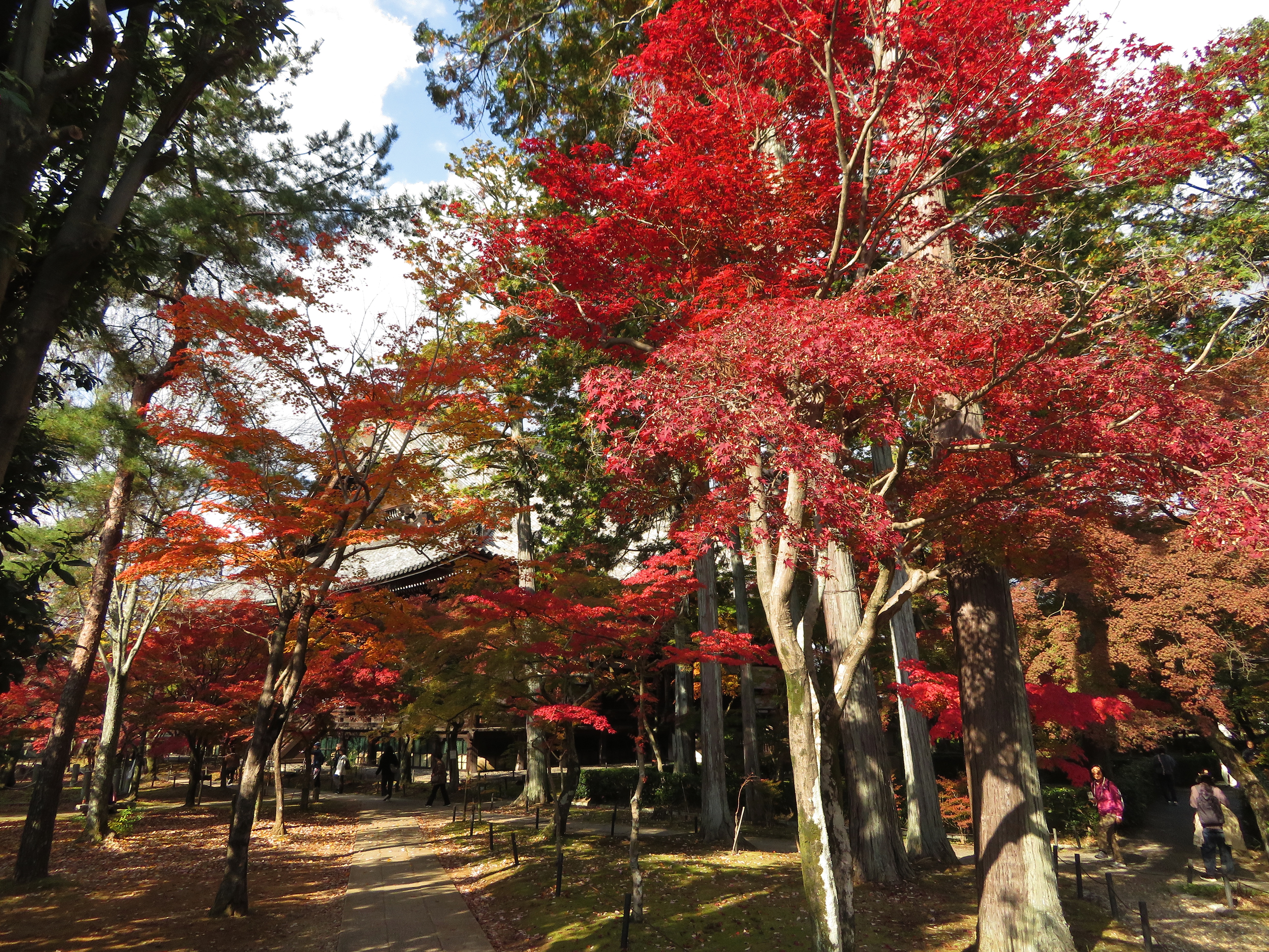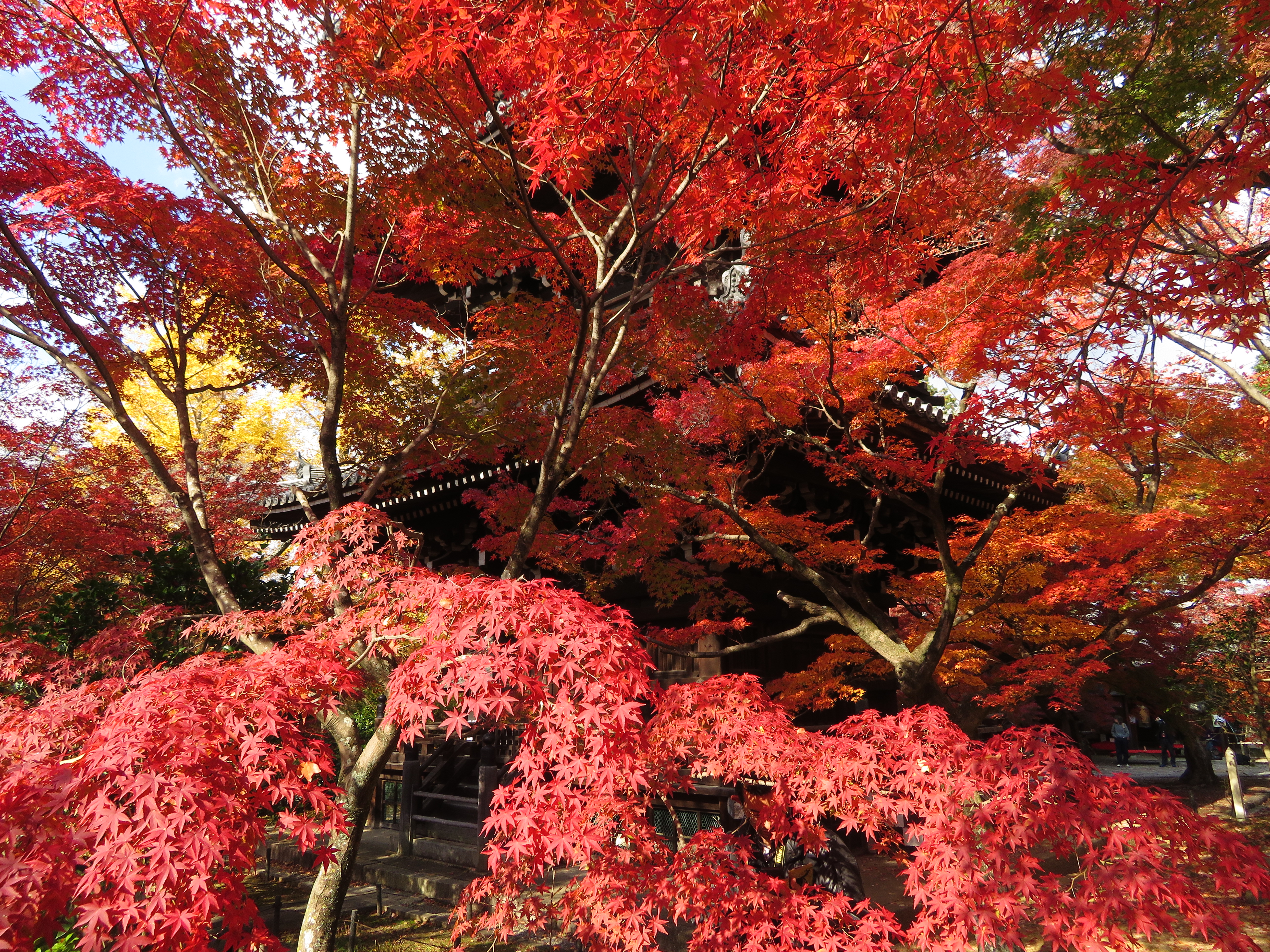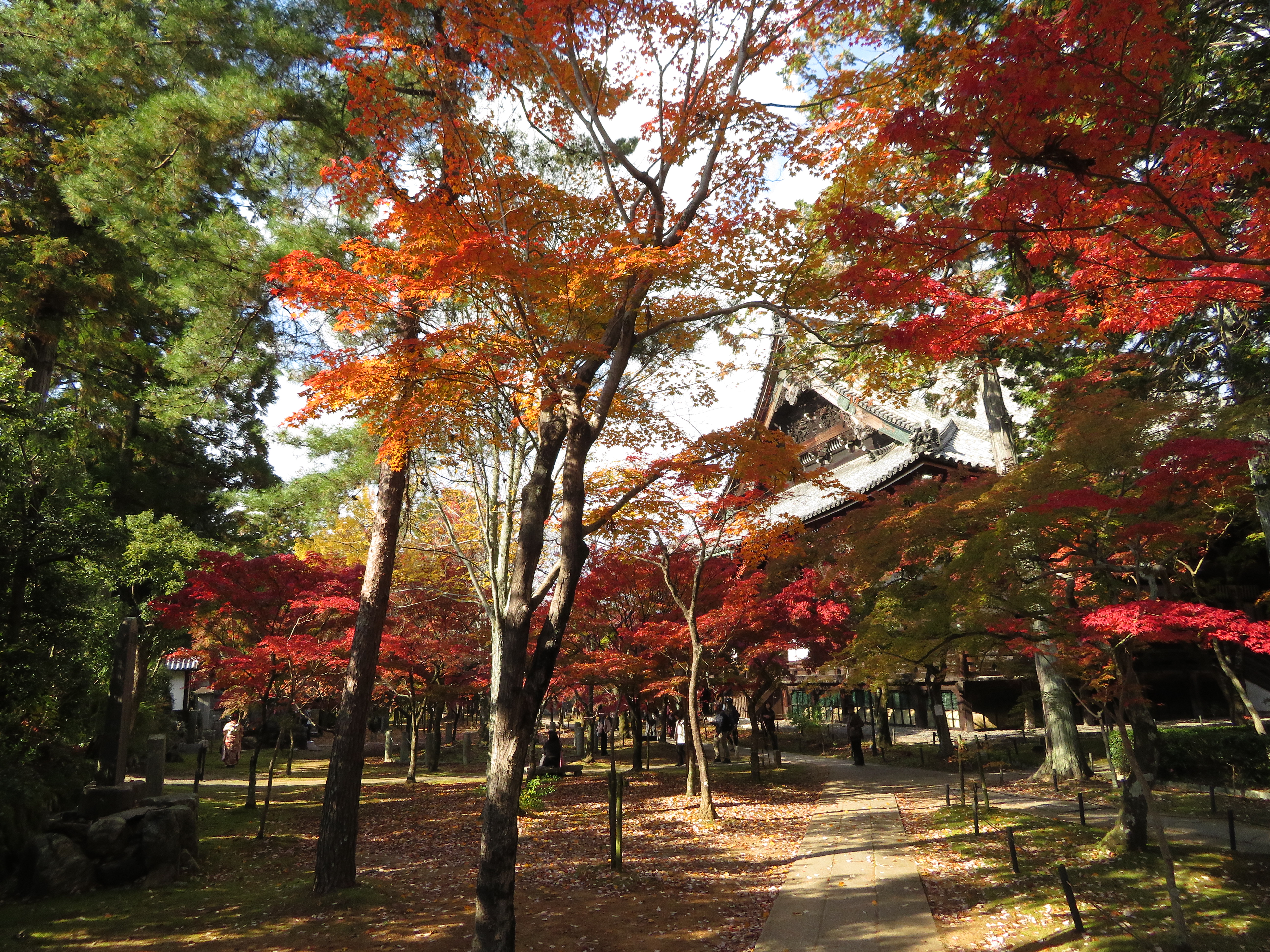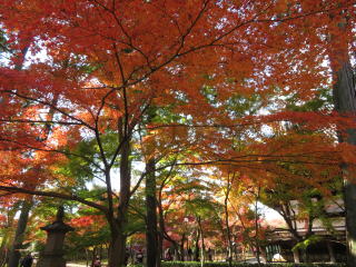 | 真如堂は今年も無料で綺麗な紅葉を見せてくれました。 本堂の裏だけが例年通り未だ色づき始めでした。 |