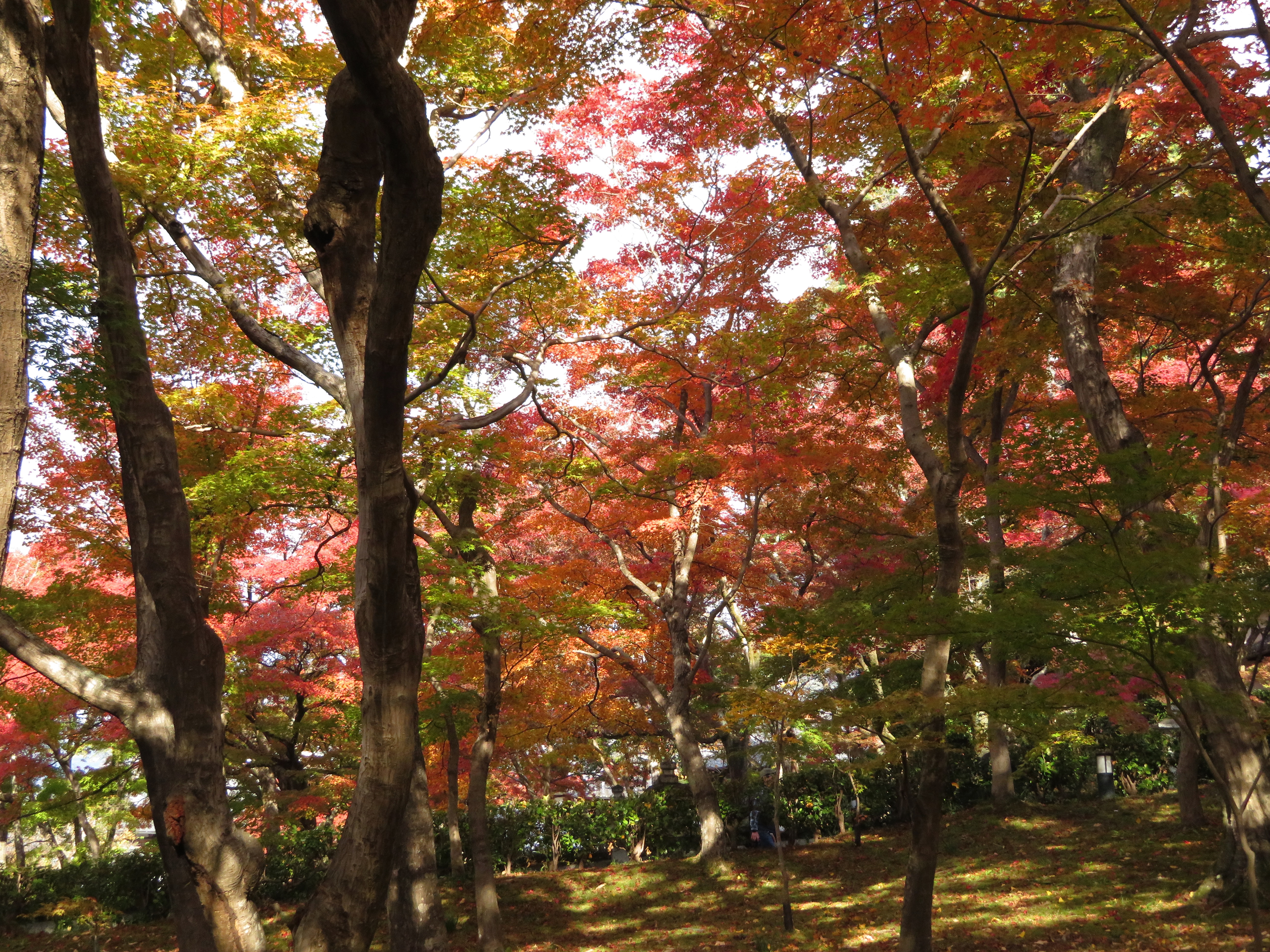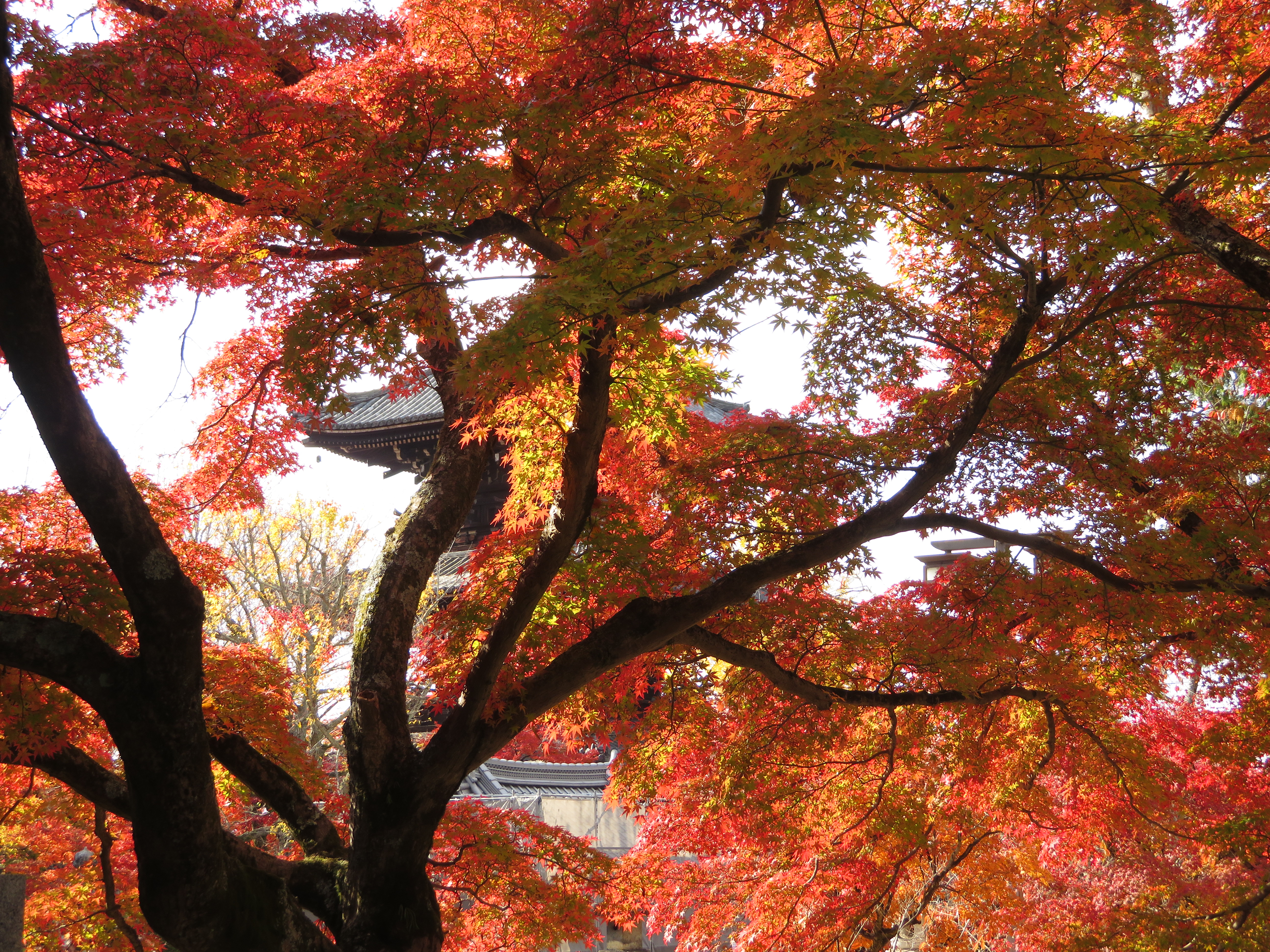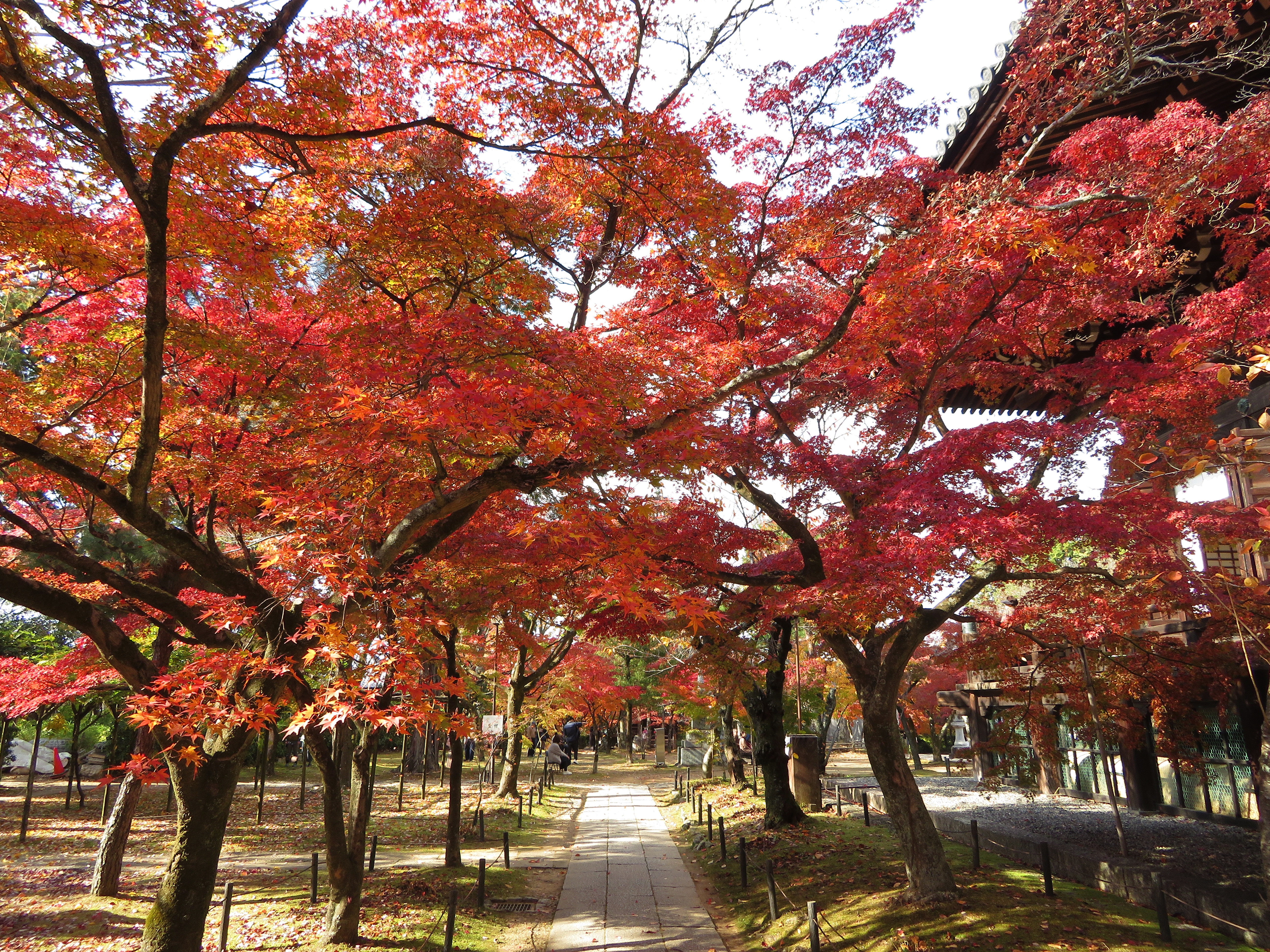 | 真如堂は今年も無料で綺麗な紅葉を見せてくれました。 本堂の裏だけが例年通り未だ色づき始めでした。 |